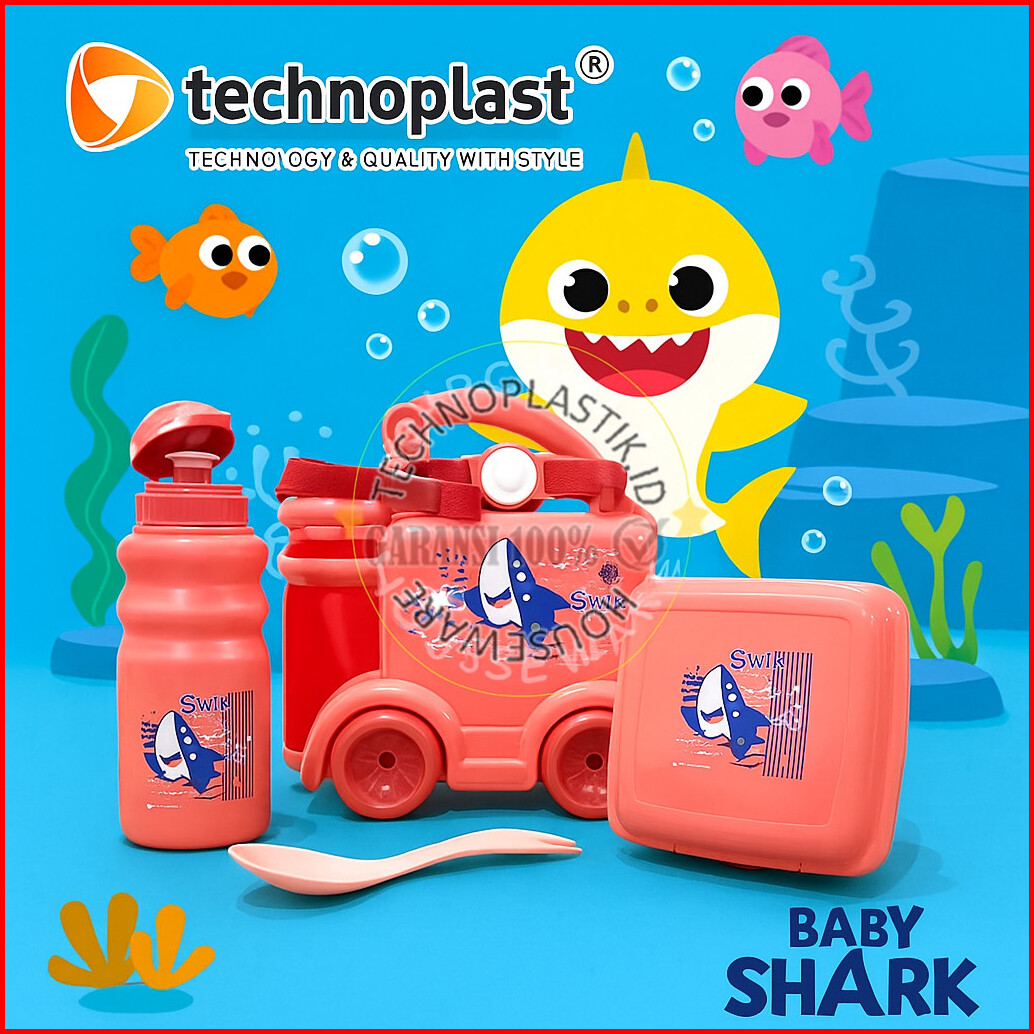 Technoplast Paket Bekal School Box Design Baby Shark Kotak Bekal Botol