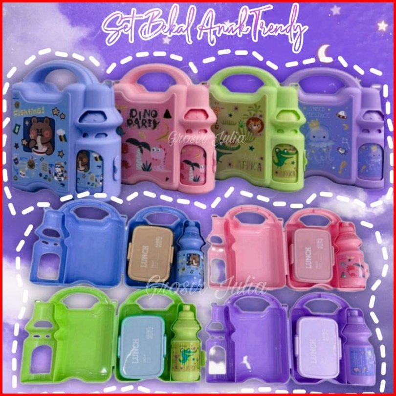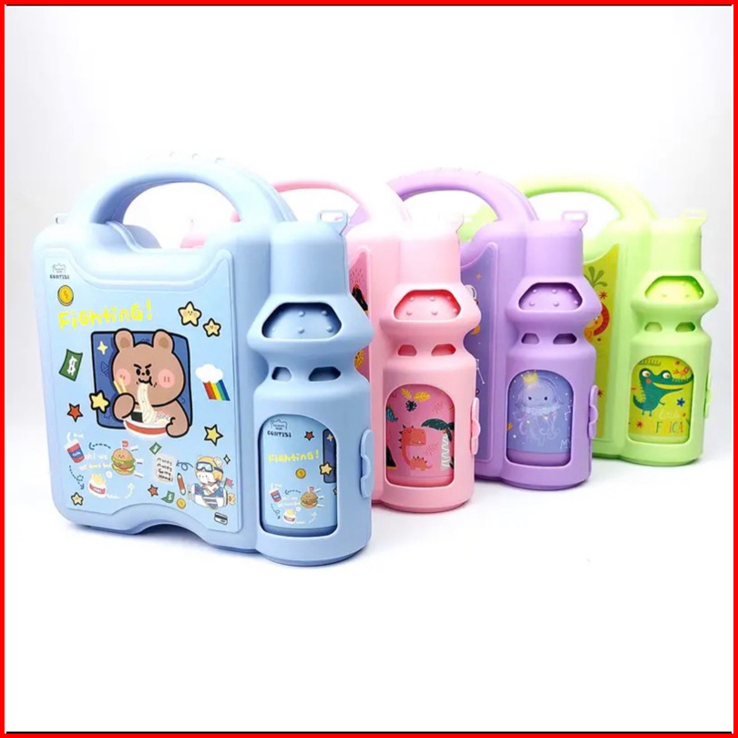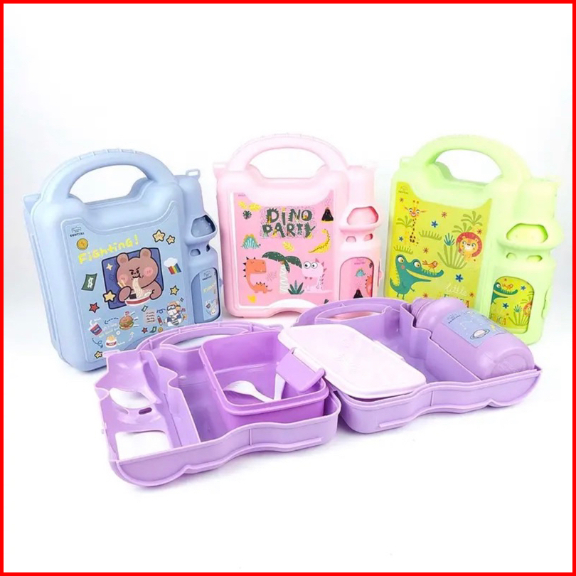 Box Set Tempat Kotak Bekal Makan Anak Sekolah Karakter Lucu