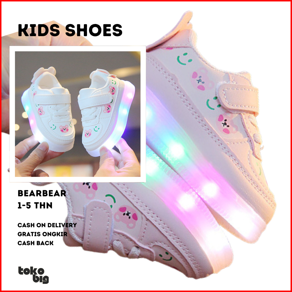 Tokobig Import Shoes Bearbear Sepatu Anak Perempuan Sepatu Lampu Led Ukuran 21-30 Usia 1-5 Tahun Top Produk