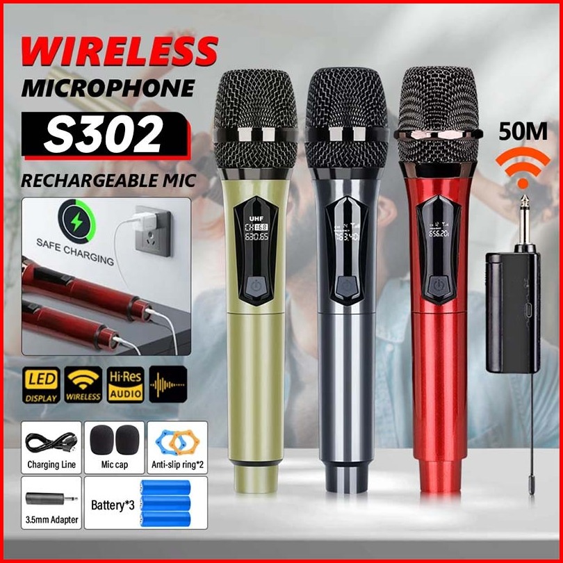 Rechargeable Mic Wireless Karaoke Tanpa Kabel S302 Mic2 Mic1 Uhf Mikrofon Karaoke Genggam Led Digital Ganda Nirkabel