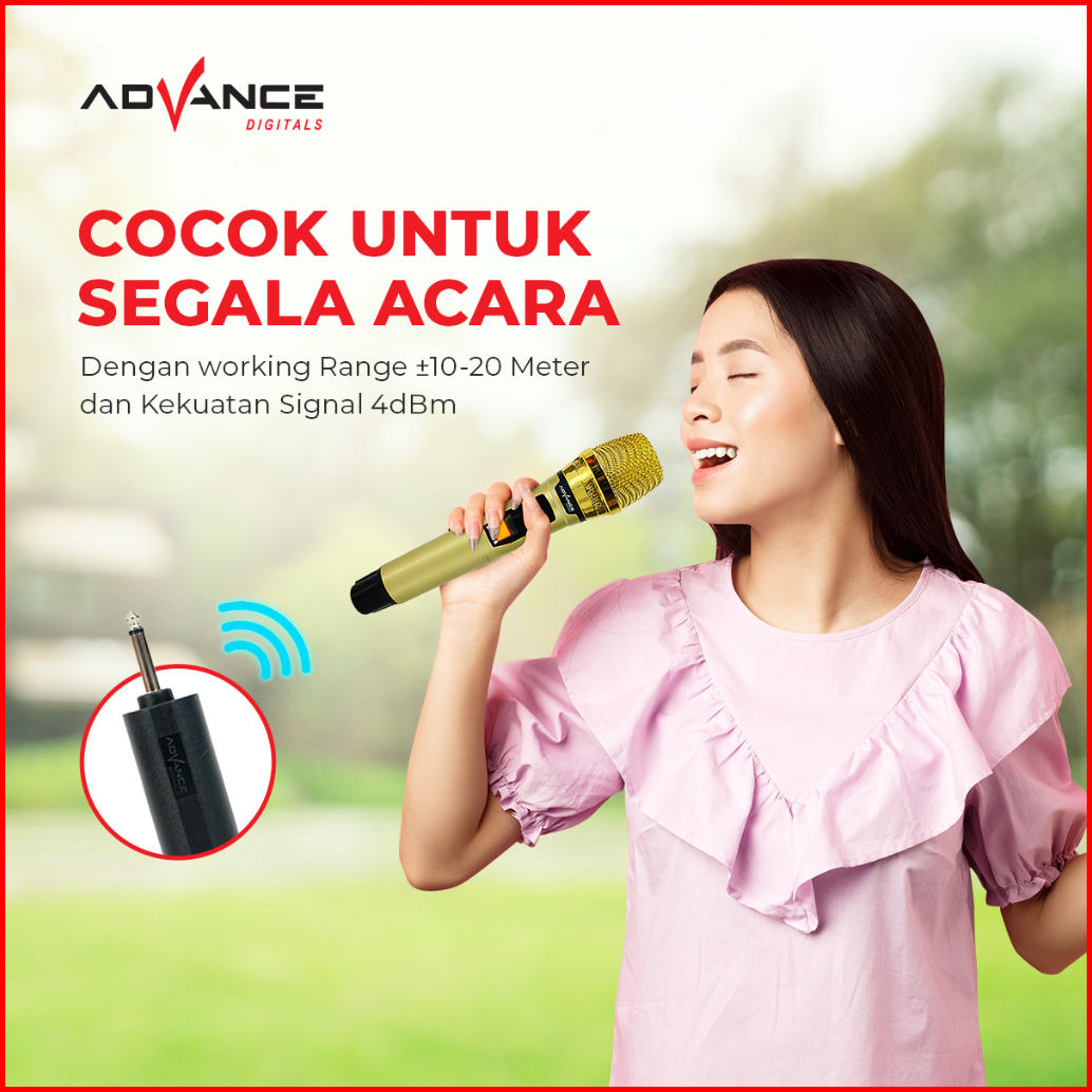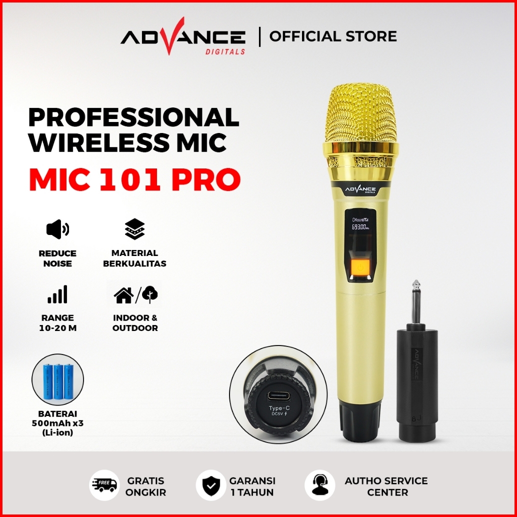 Advance Mic-101 Pro Profesional Microphone Wireless Bisa Dicharger Frekuensi Uhf Garansi 1 Tahun