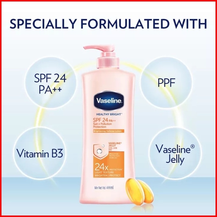 Vaseline Healthy Bright Hand Body Lotion Spf 24 Pa Sun Pollution Protection - Healthy White Lotion Kulit Kusam 400ml