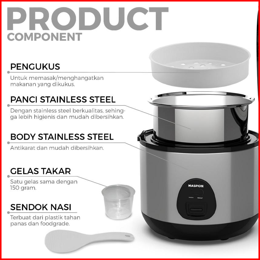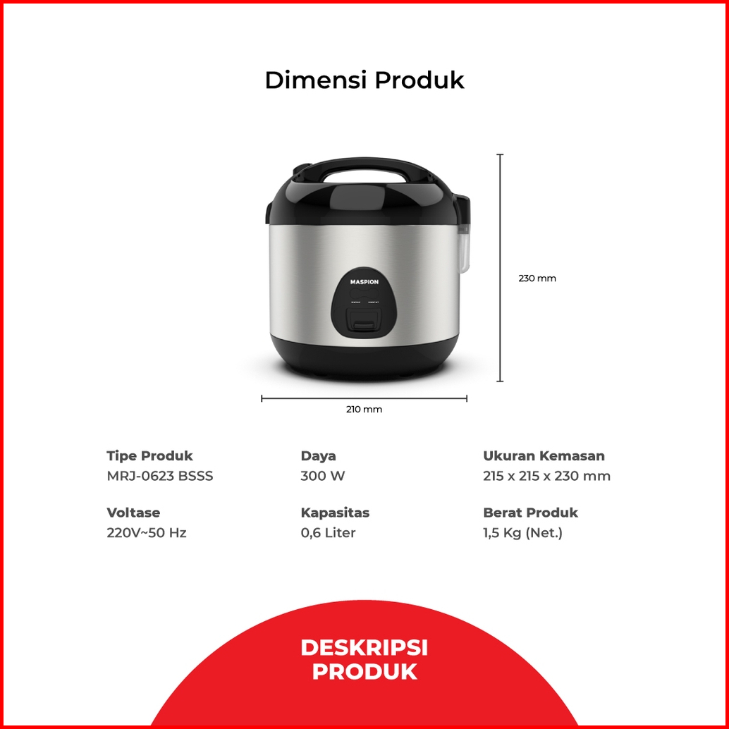Maspion Rice Cooker Magic Com Mini 0 6 Liter 0.6l Mrj 0623 Bsss Stainless Mrj-0623bsss Mrj0623bsss