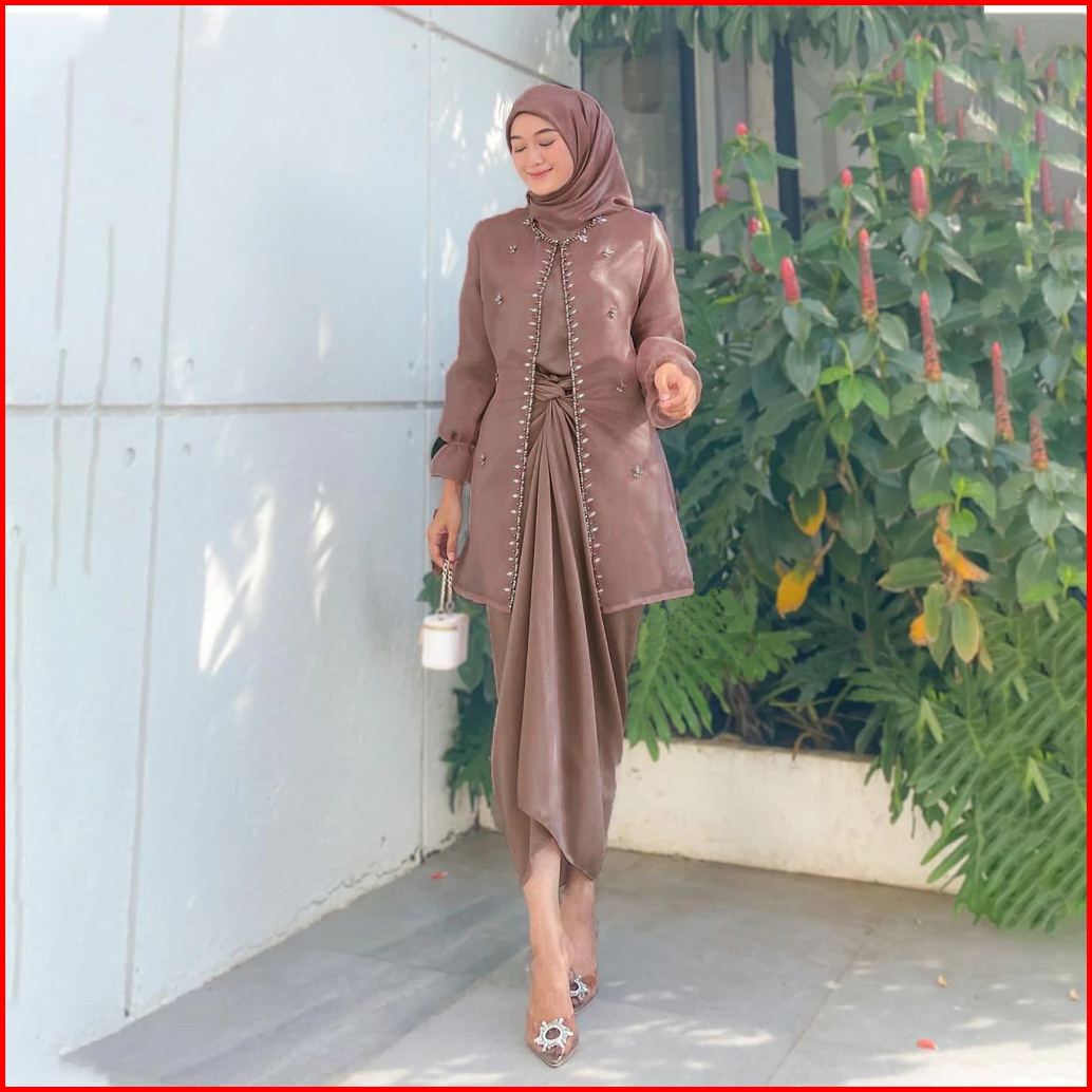 Oneset Jemma Organza Premium Outfit Kondangan Setelan Rok Lilit Satin Maxmara Termurah Ootd Remaja 2023 Seragam Bridesma