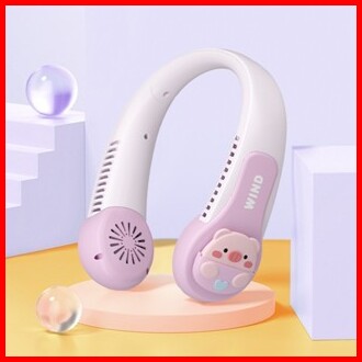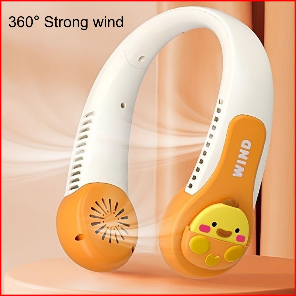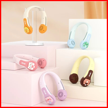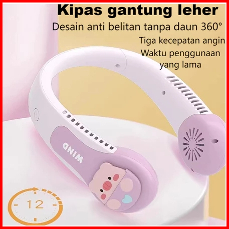 Kipas Angin Leher Gantung Kartun Kipas Portabel Usb Rechargable 3-speed Wind Lucu Anak Kipas Leher Portable Mini Hanging