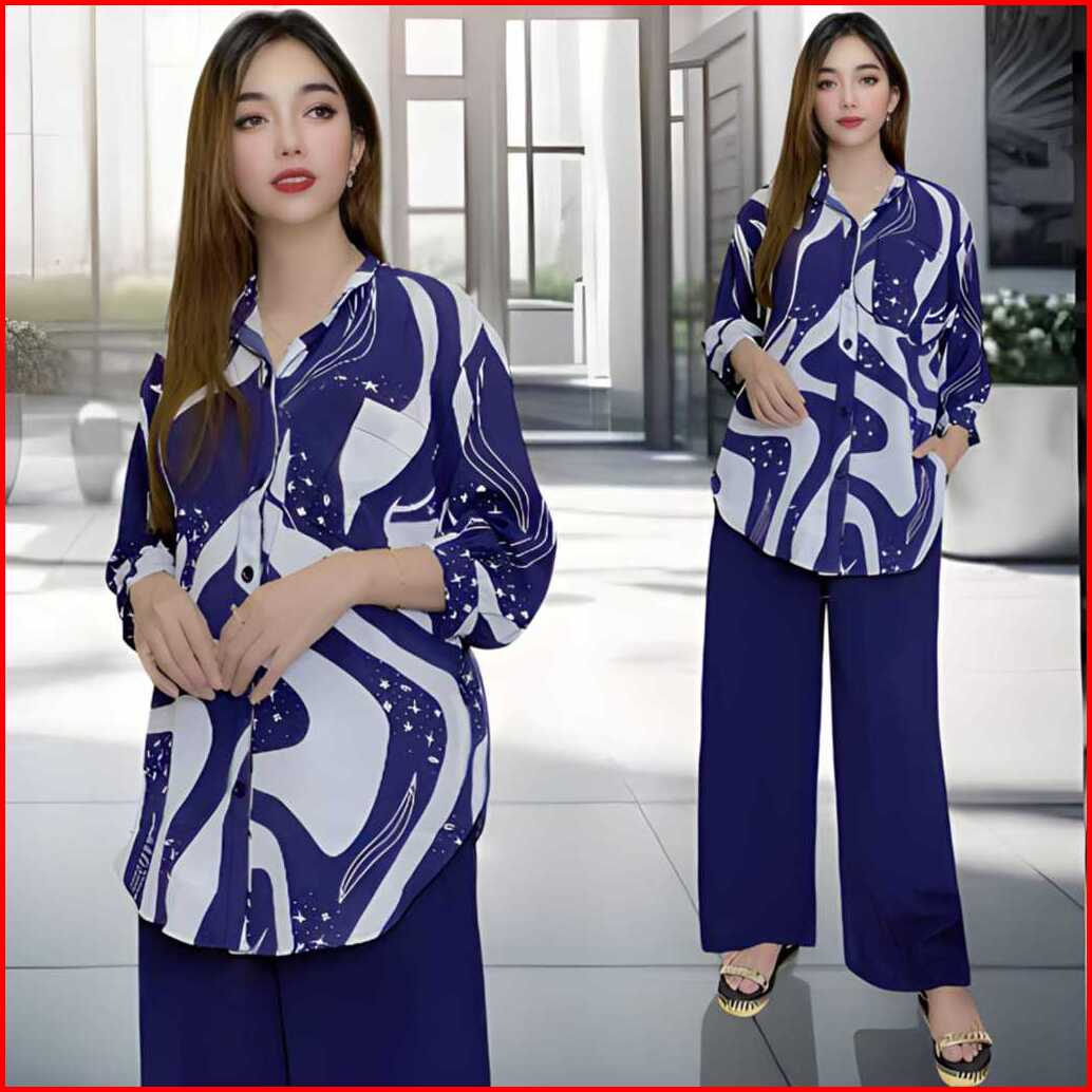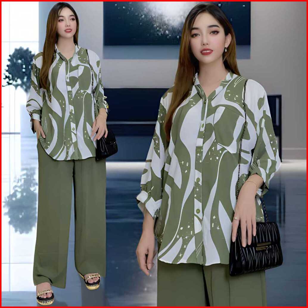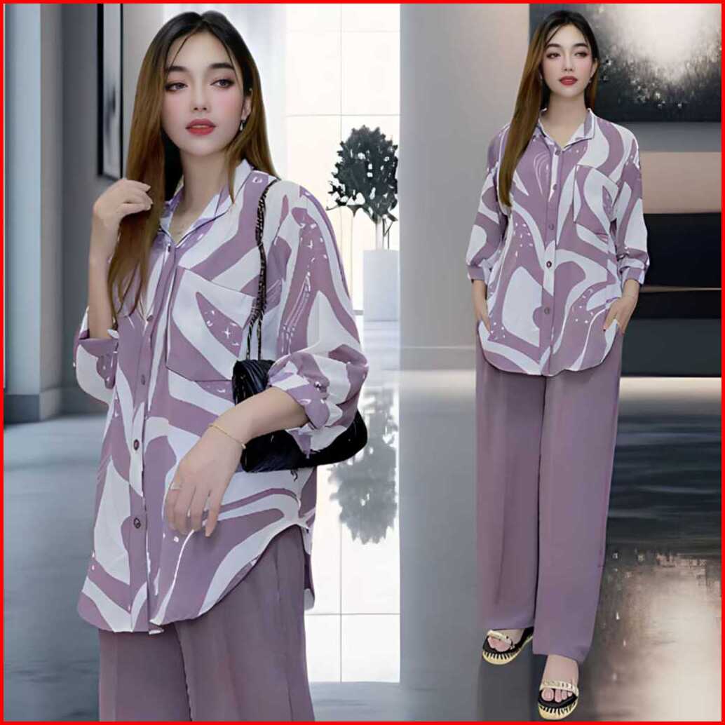 Rafifah Setelan Crincle Wanita Kekinian Ld 120 Atasan Kemeja Oval Celana Lurus Bahan Crincleairflow