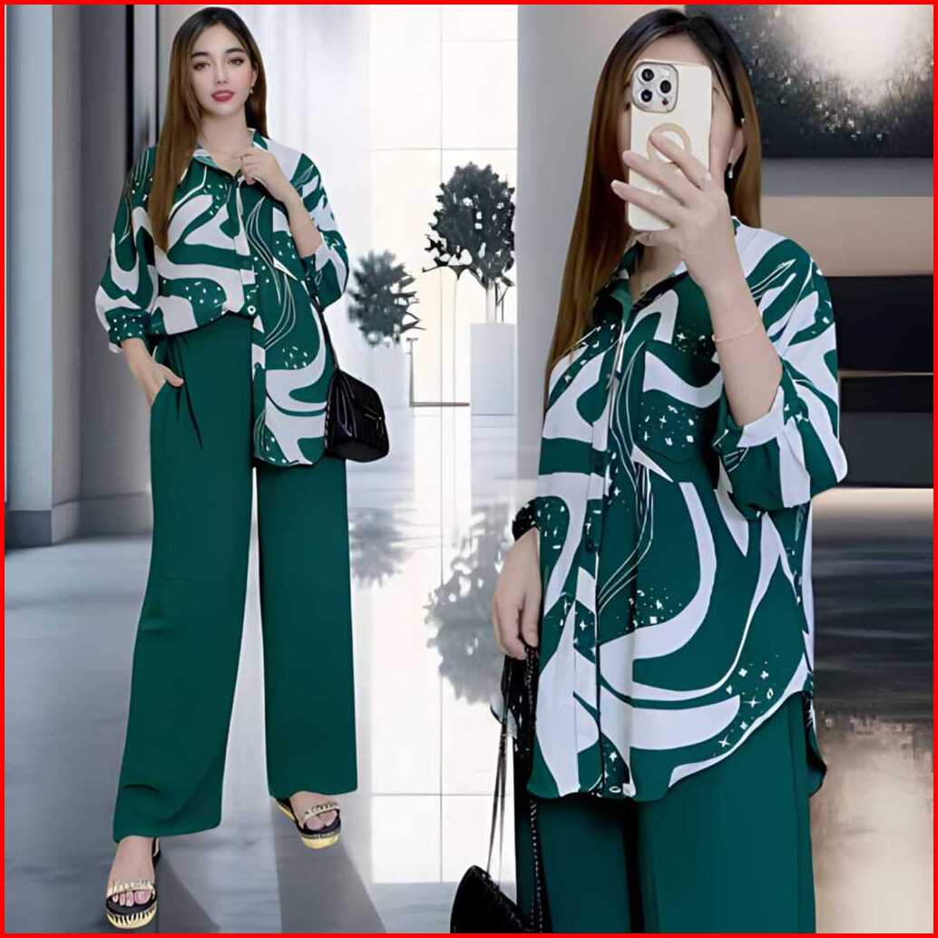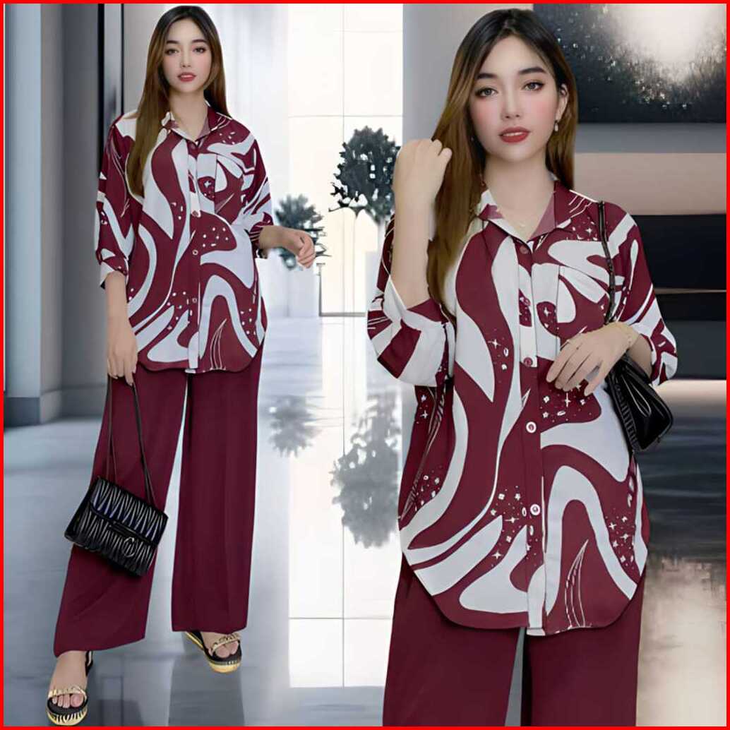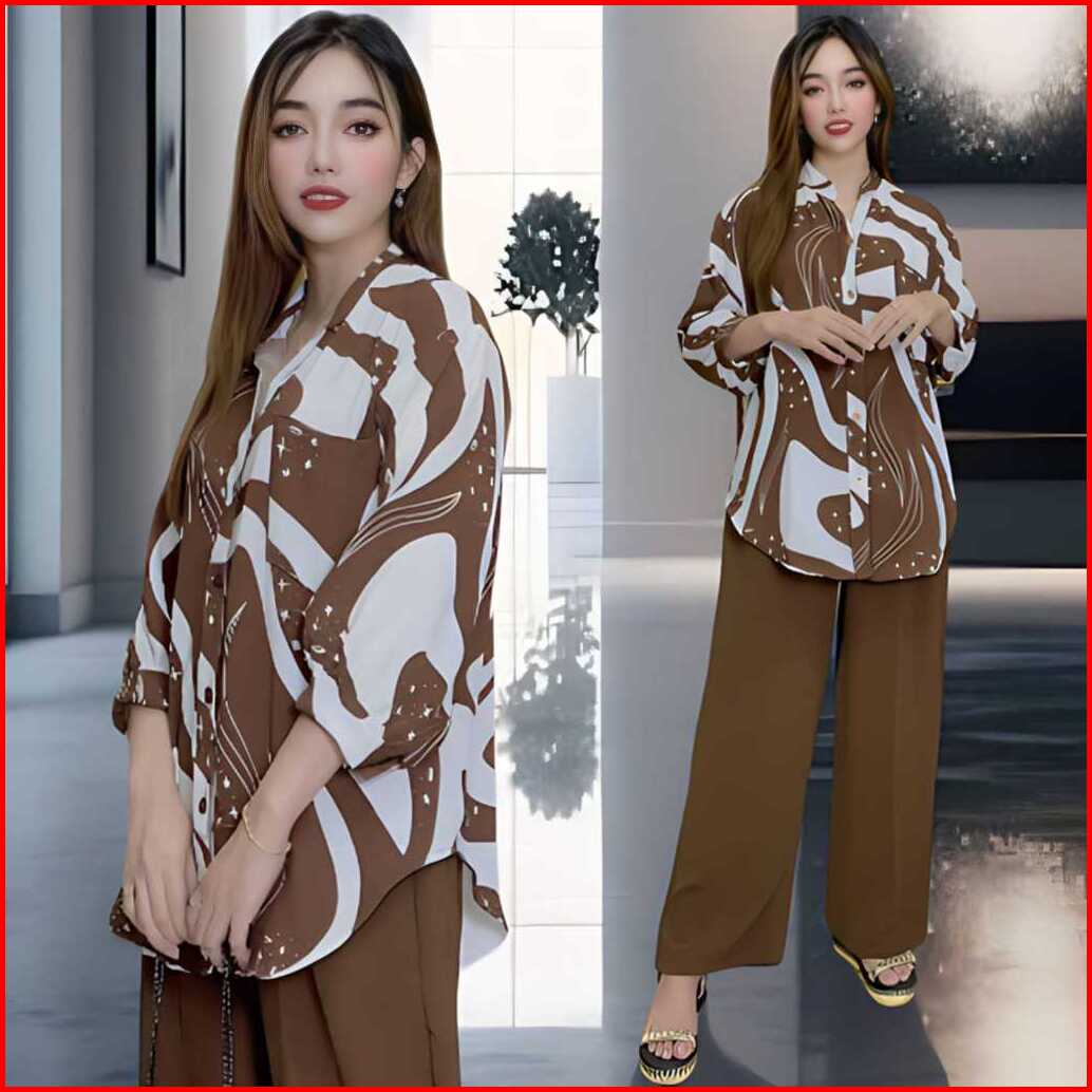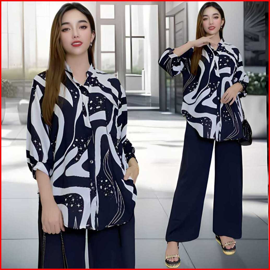 Rafifah Setelan Crincle Wanita Kekinian Ld 120 Atasan Kemeja Oval Celana Lurus Bahan Crincleairflow