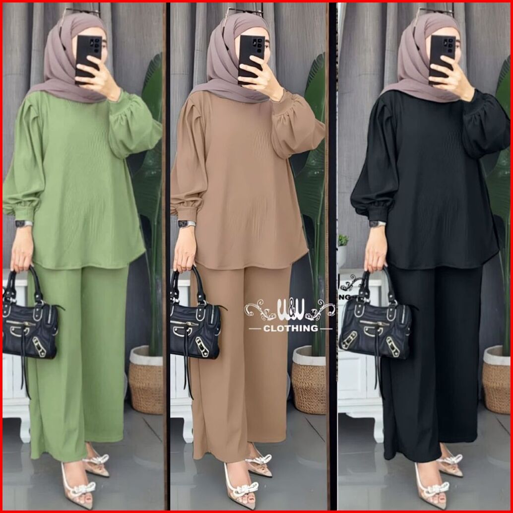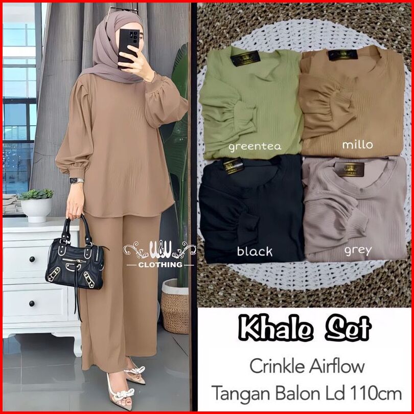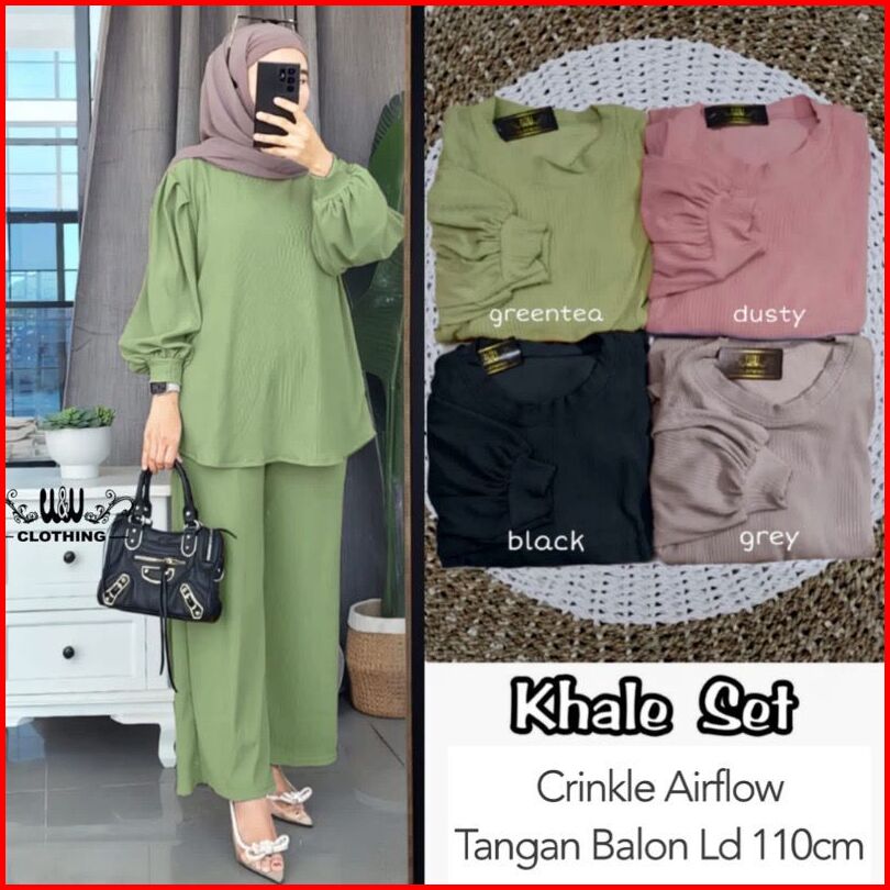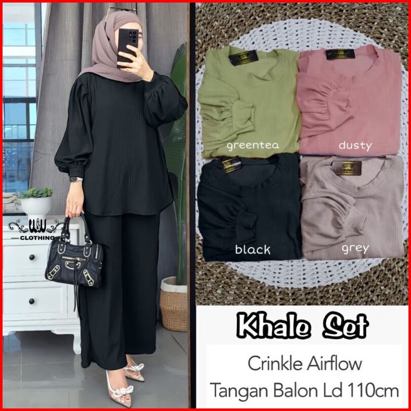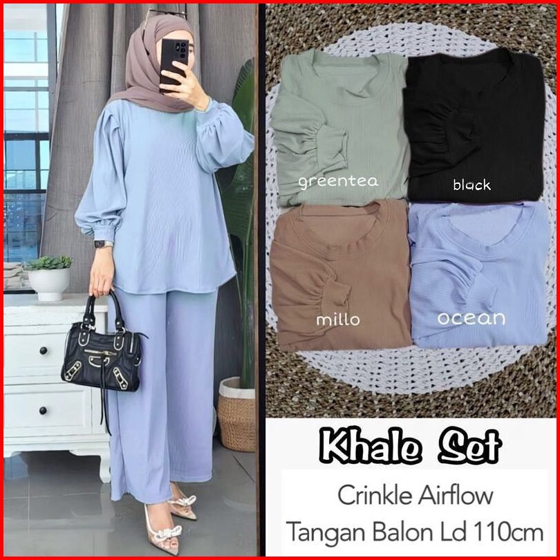 New Khale Set Tangan Balon Crinkle Airflow Ld 110 Setelan Khale One Set Khale Set Wanita Polos Setelan Polos Setcel Wani