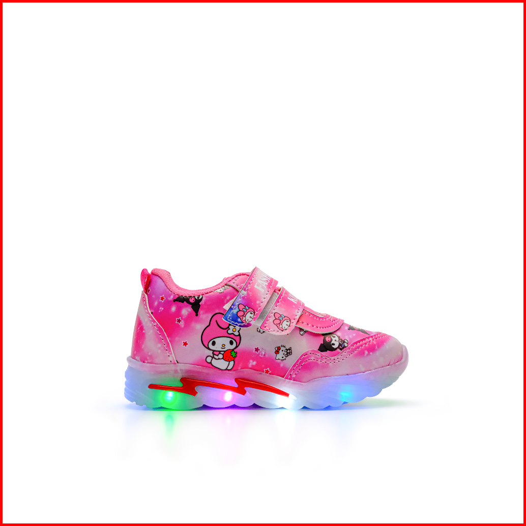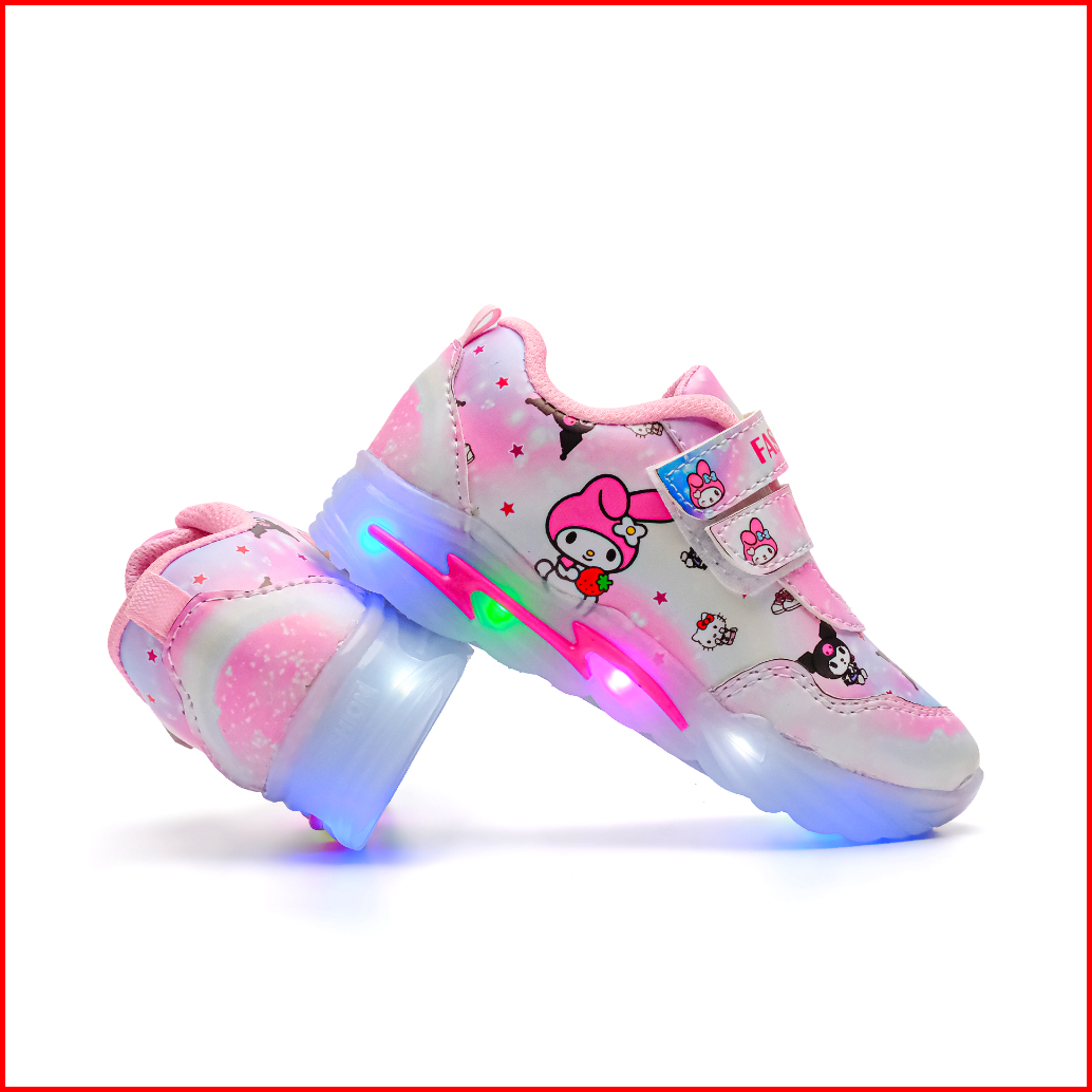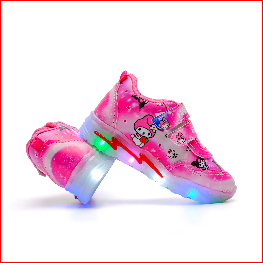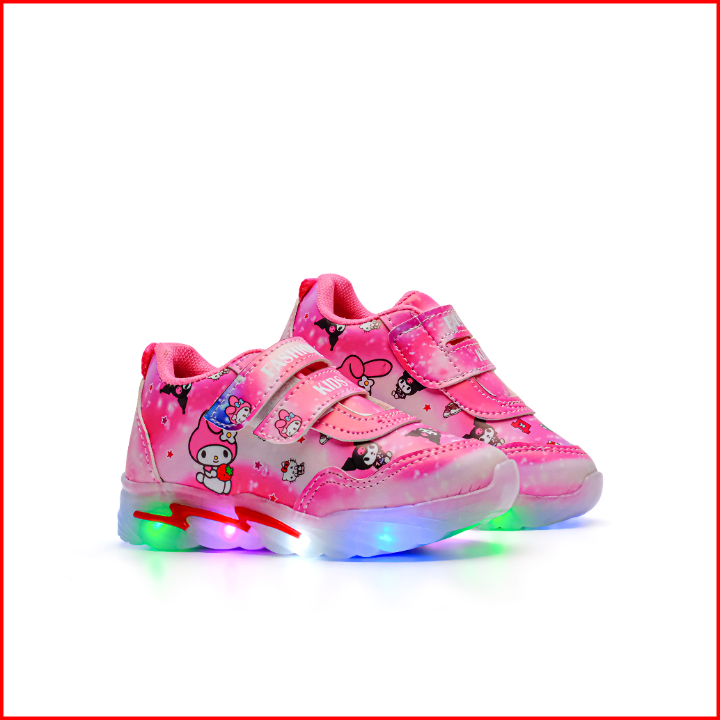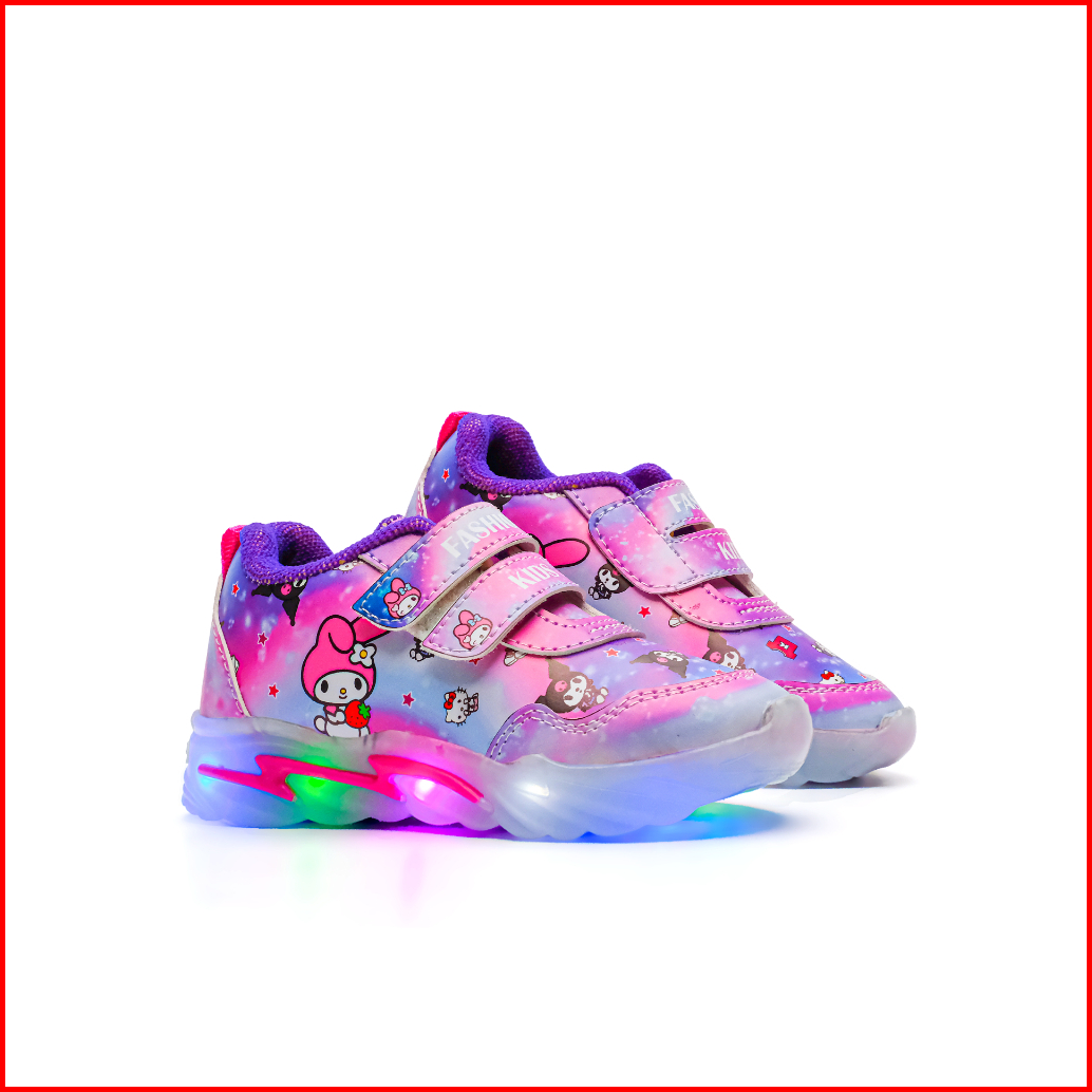 Sepatu Sneakres Anak Perempuan Dengan Lampu Led Model Karakter Kuromi Gradasi 1-6 Tahun