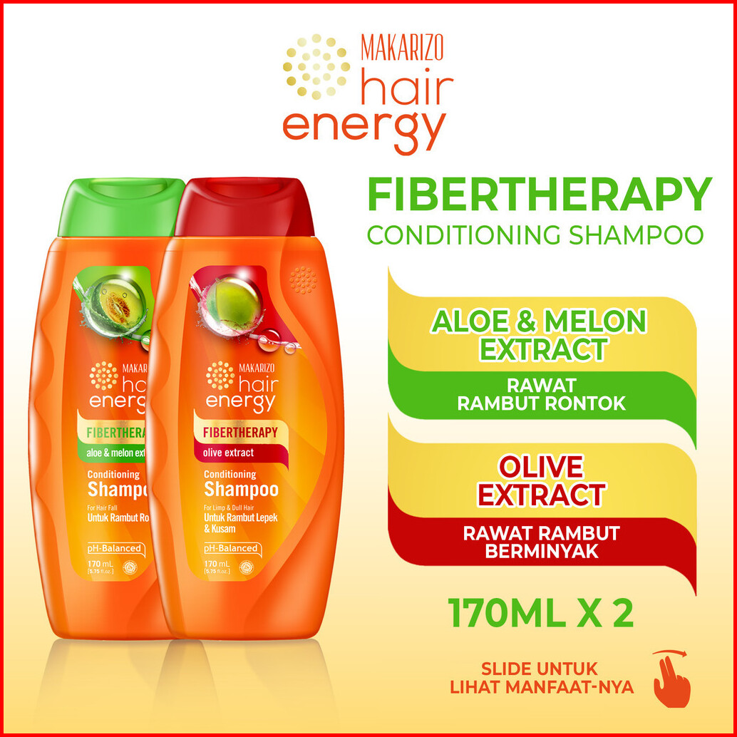 Paket Makarizo Hair Energy Shampoo Untuk Rambut Rontok Lepek Aloe Melon Olive Extract 170ml