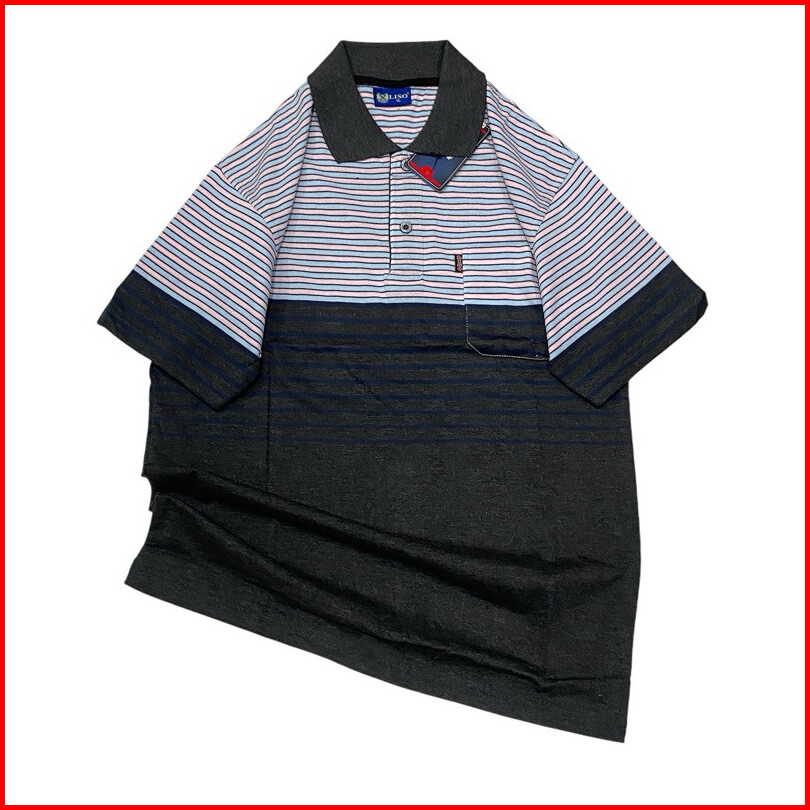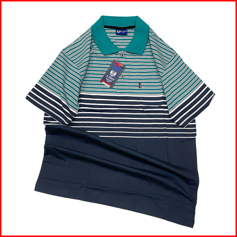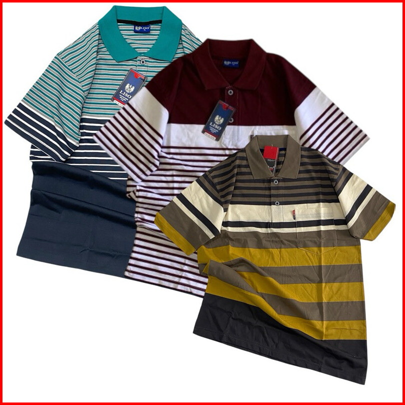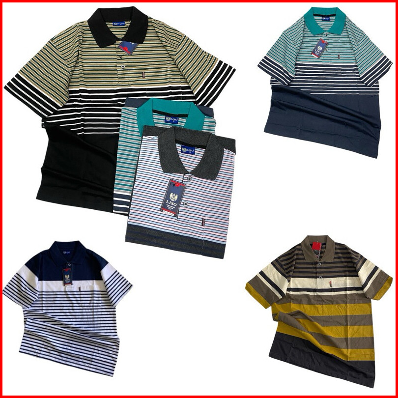 Kaos Krah Pria Salur Balok Asli Dewasa L Lengan Pendek