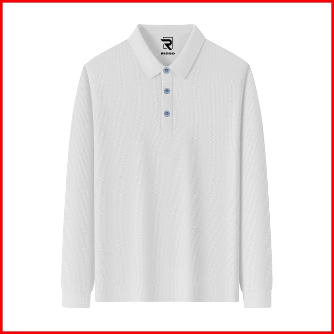 Rizgo - Kaos Polo Kerah Lengan Panjang Polos Terkeren Pria Wanita Baju Santai Baju Kerja