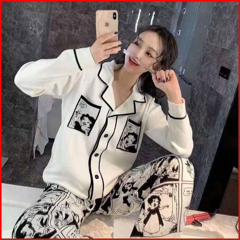 Piyama Kerah Des Ney Putih Import Baju Tidur Import Pakaian Wanita Ukr Fit To L Xl Bahan Kaos Import Best Seller
