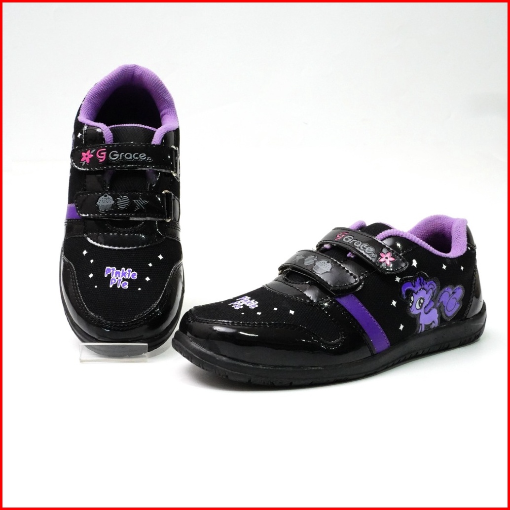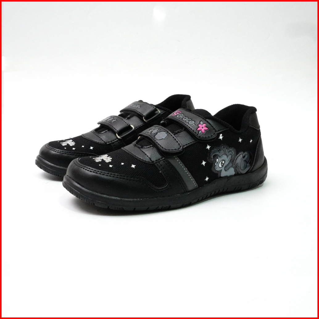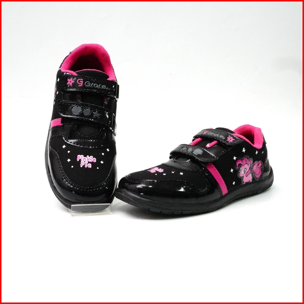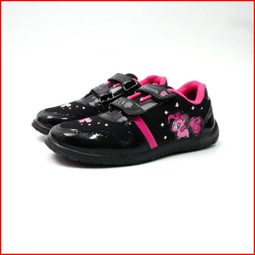 Grace Pony 26-35 Sepatu Santai Anak Cewek Perempuan Hitam Sepatu Sneaker Perekat Pony Sekolah
