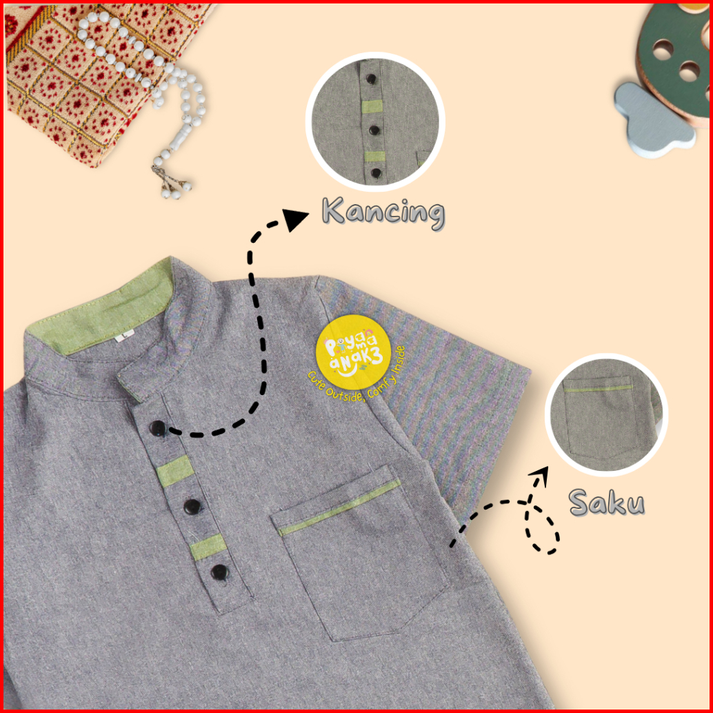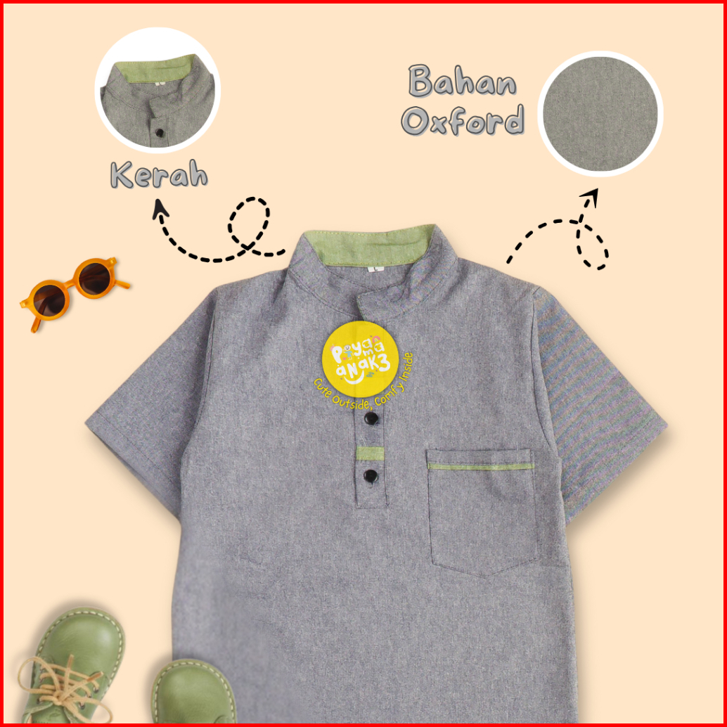Koko Kurta Oxford Kancing Anak Usia 1-12 Tahun