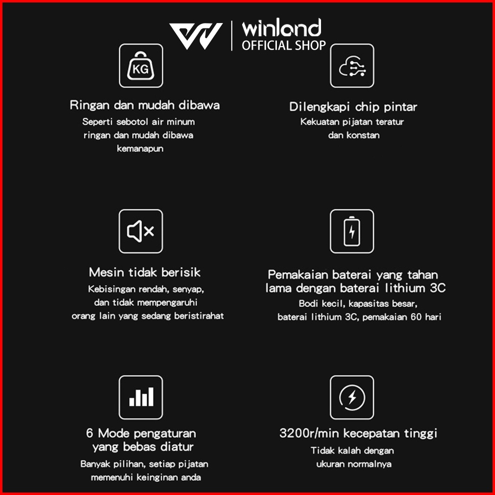 Winland Massage Alat Pijat Elektrik Pijat Getar Elektrik Mgbk Deep Tissue Muscle Massager -black