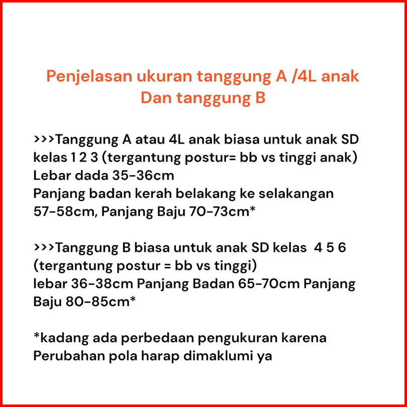 Tanggung B merah, Tanggung A merah, Tanggung A biru, Tanggung B Abu, Tanggung B Kuning, Tanggung B biru
