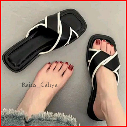 Rains Cahya Sandal Wanita Kekinian Sandal Teplek Full Busah Sandal Wanita Gemoy Sandal Trendyy
