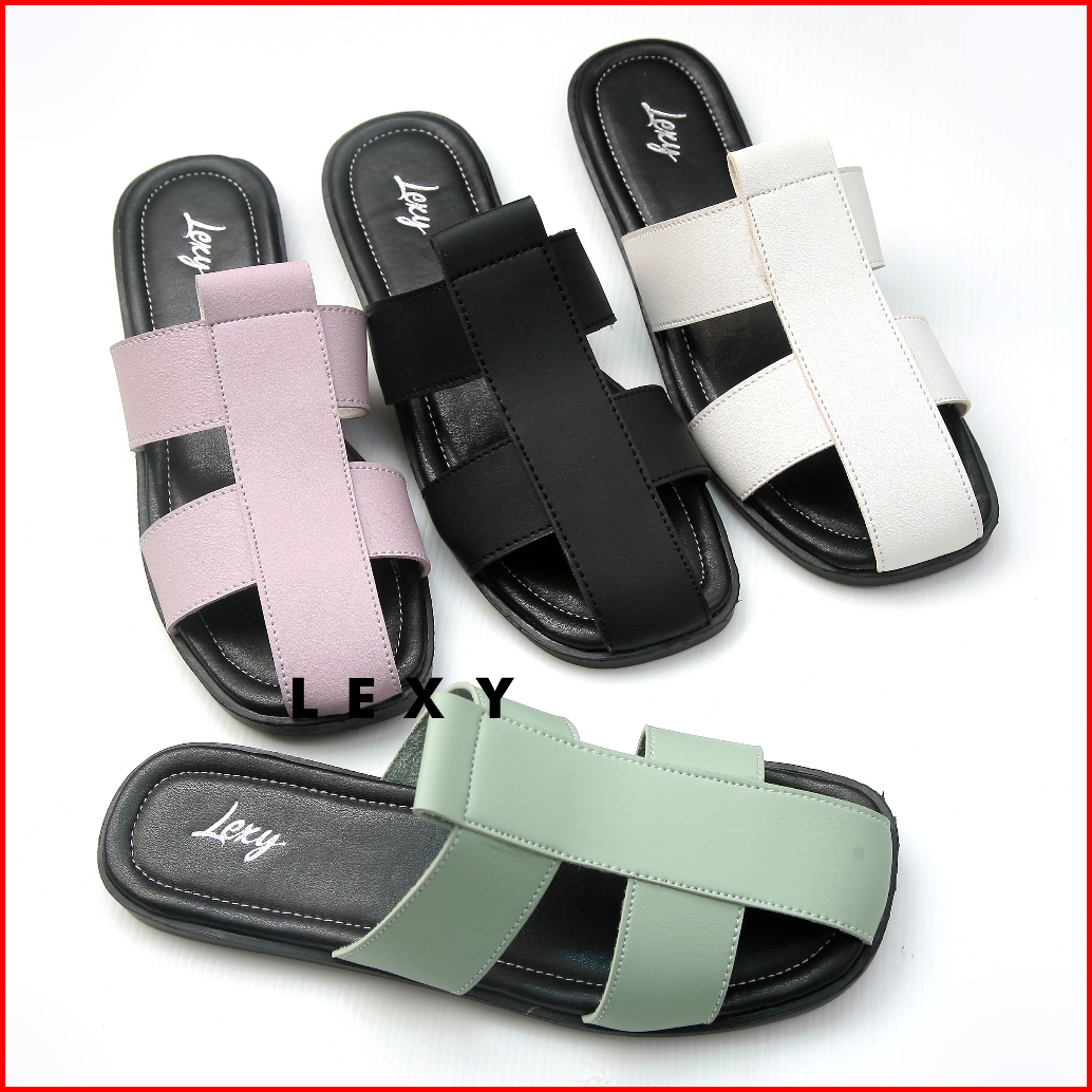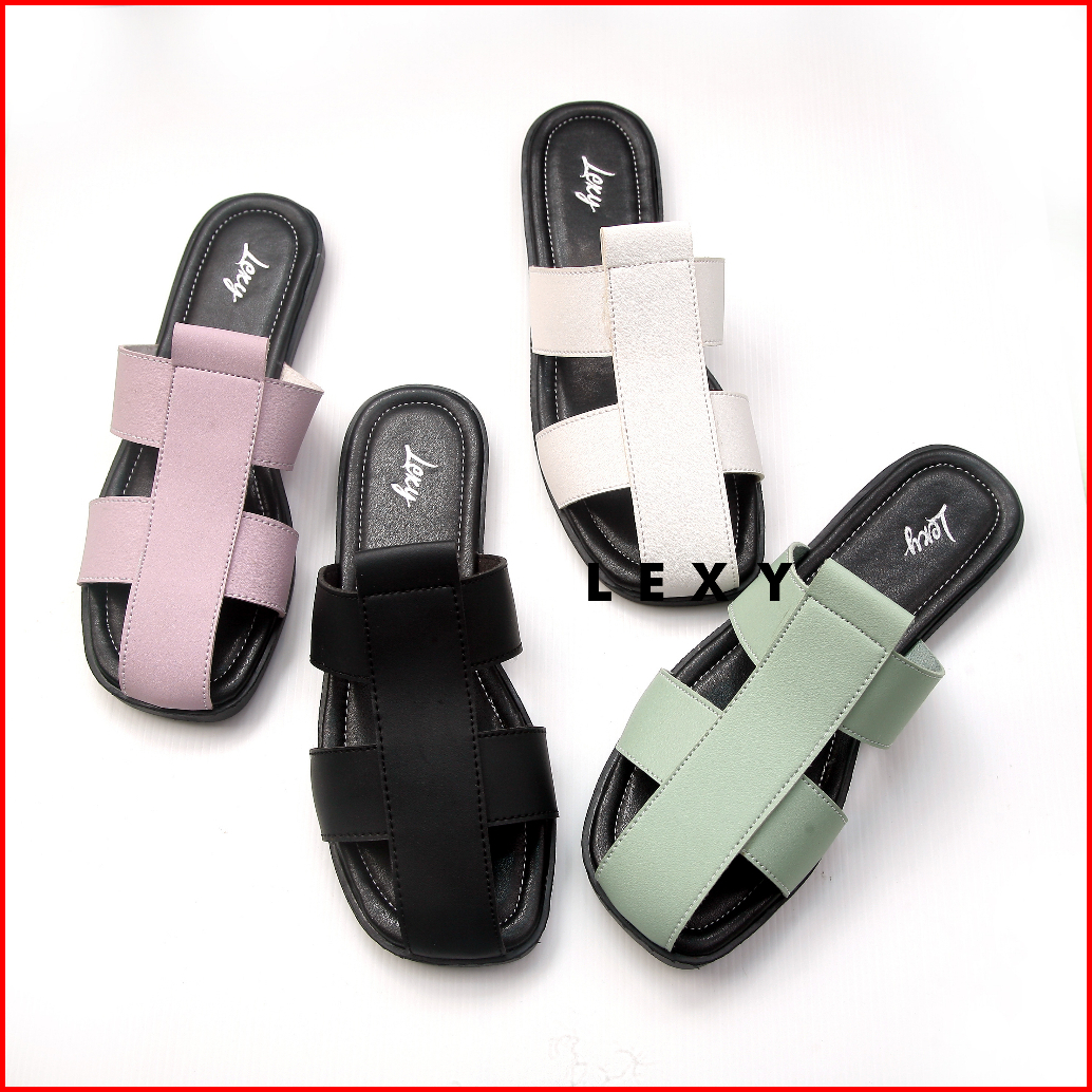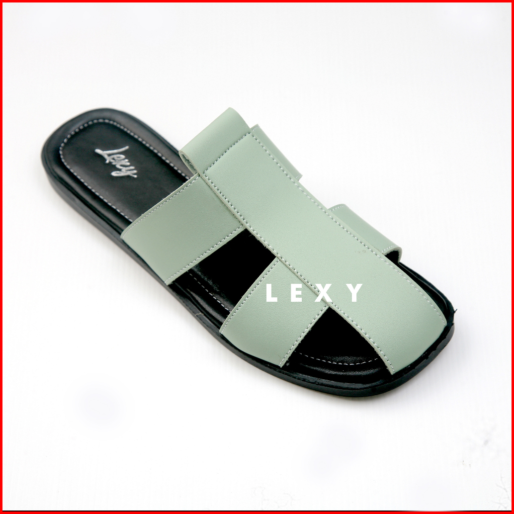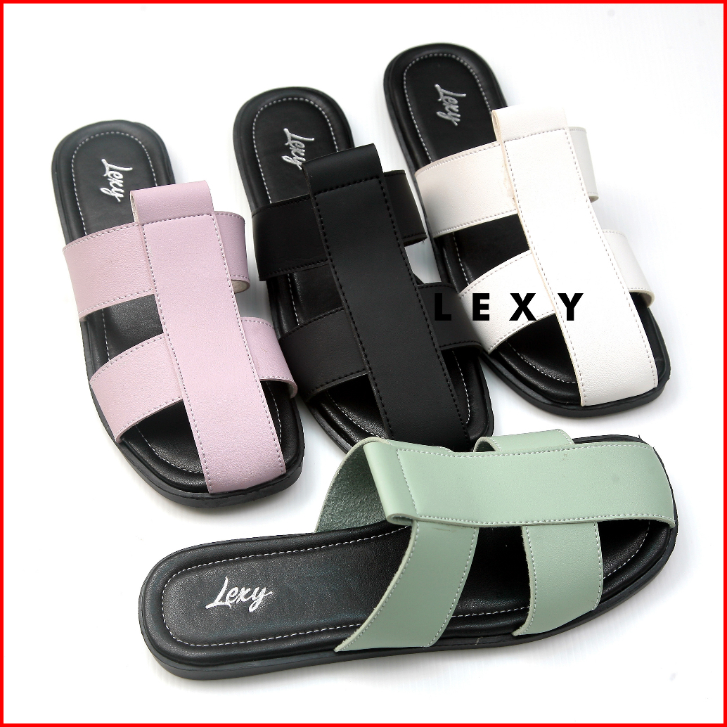 Lexy Aileen Sandal Wanita Teplek Flat Kulit Warna Pastel