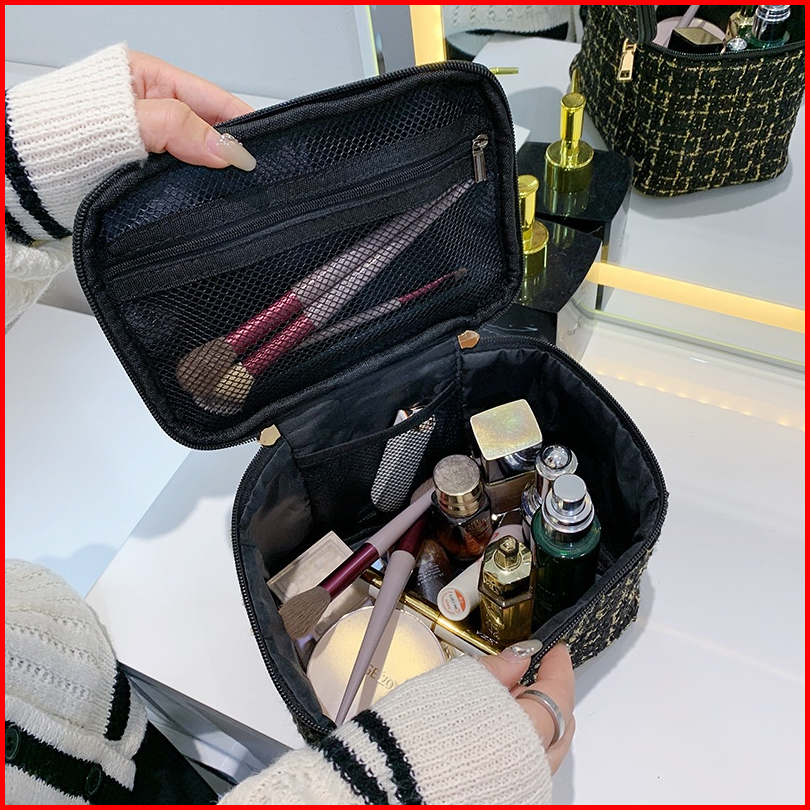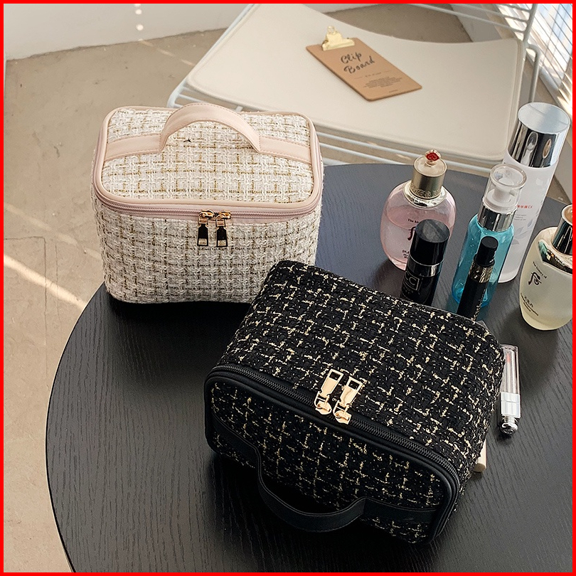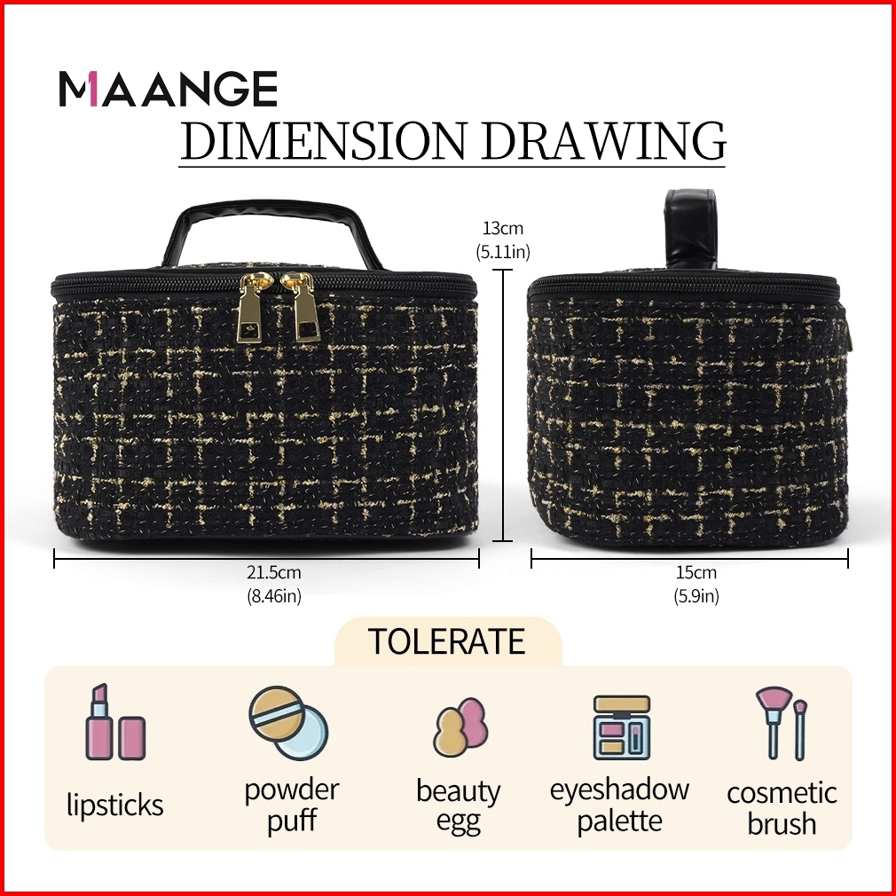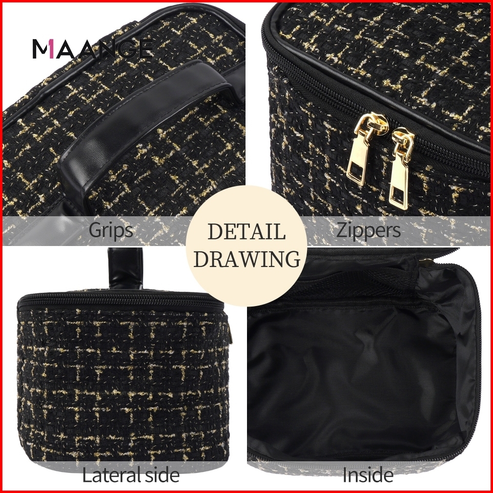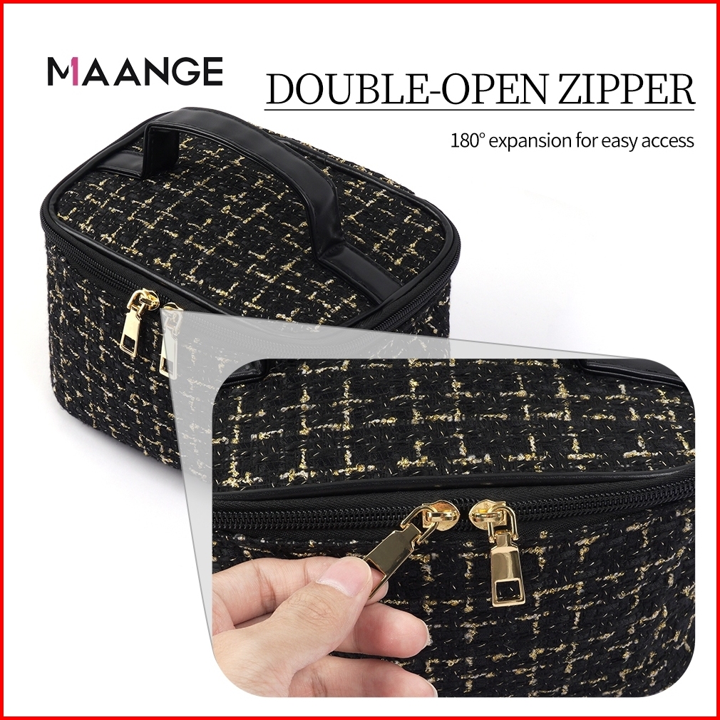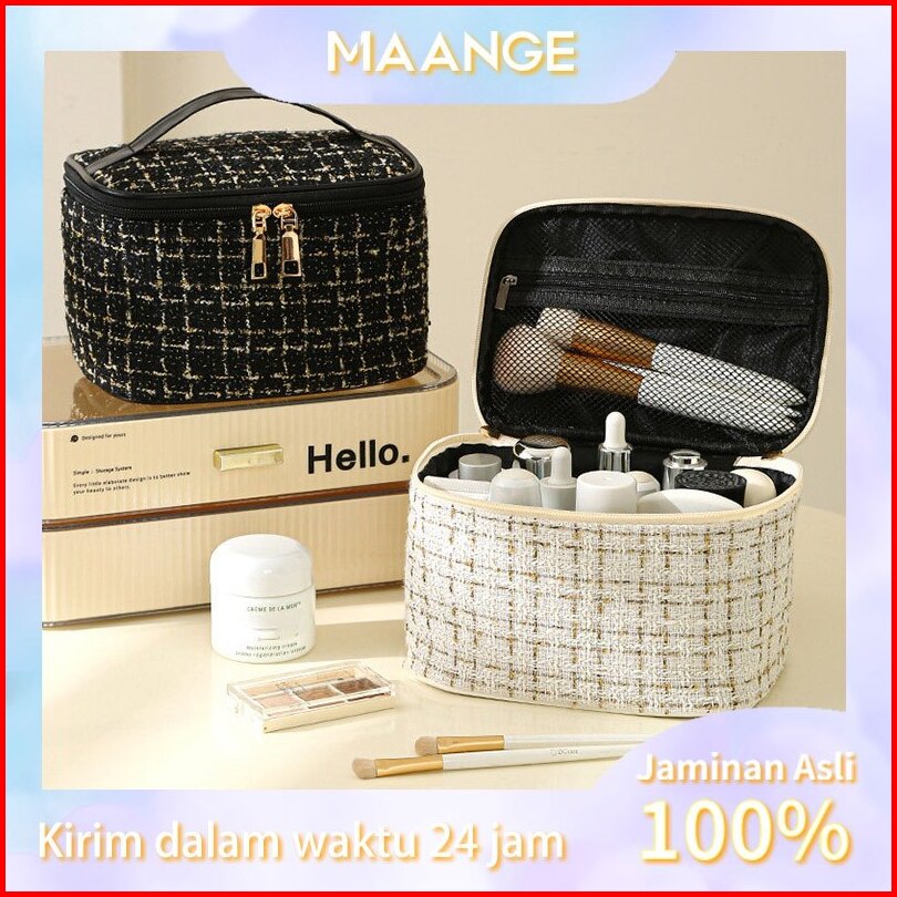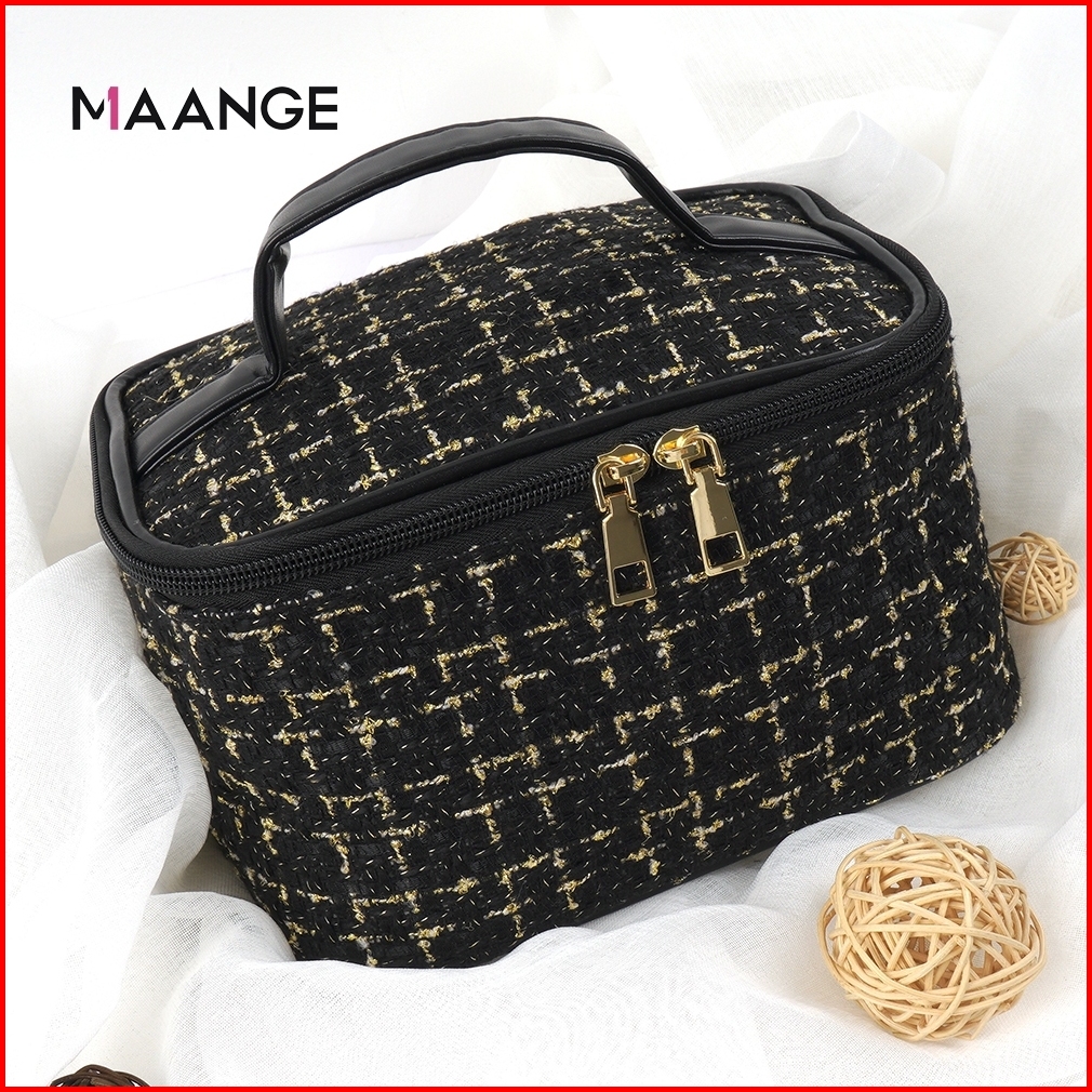 Maange Merajut Tweed Travel Tas Kosmetik Premium Tahan Air Tas Organizer Kosmetik Besar Kecil Perlengkapan Mandi Kantong