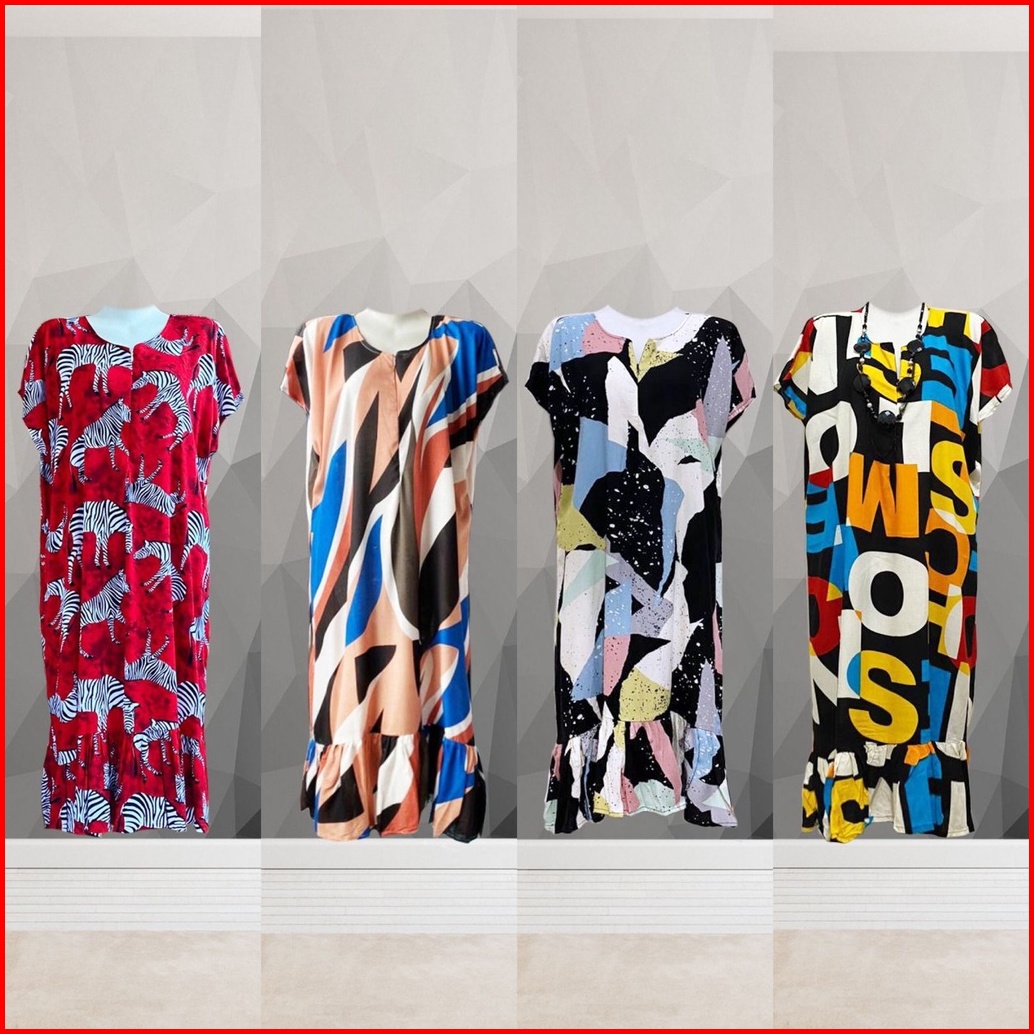 Daster Ruffle Busui Panjang Selutut Rempel Viral Kekinian