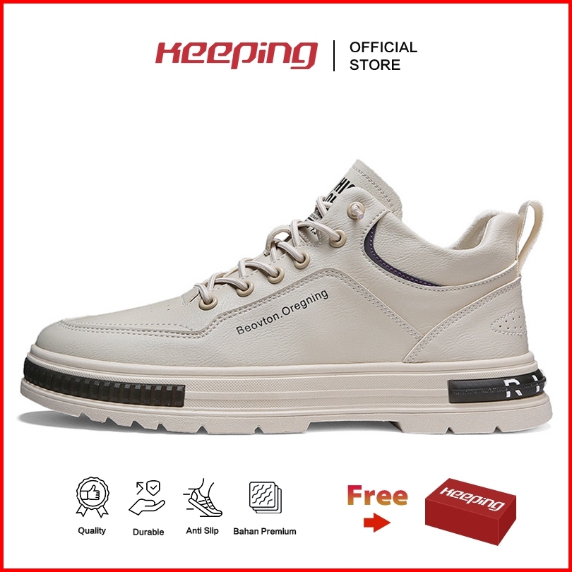 Keeping Sepatu Sneakers Pria Sepatu Boots Martin Cream Casual Cowok Sepatu Tinggi High Sport Olahraga Joging Shoes Ksc11