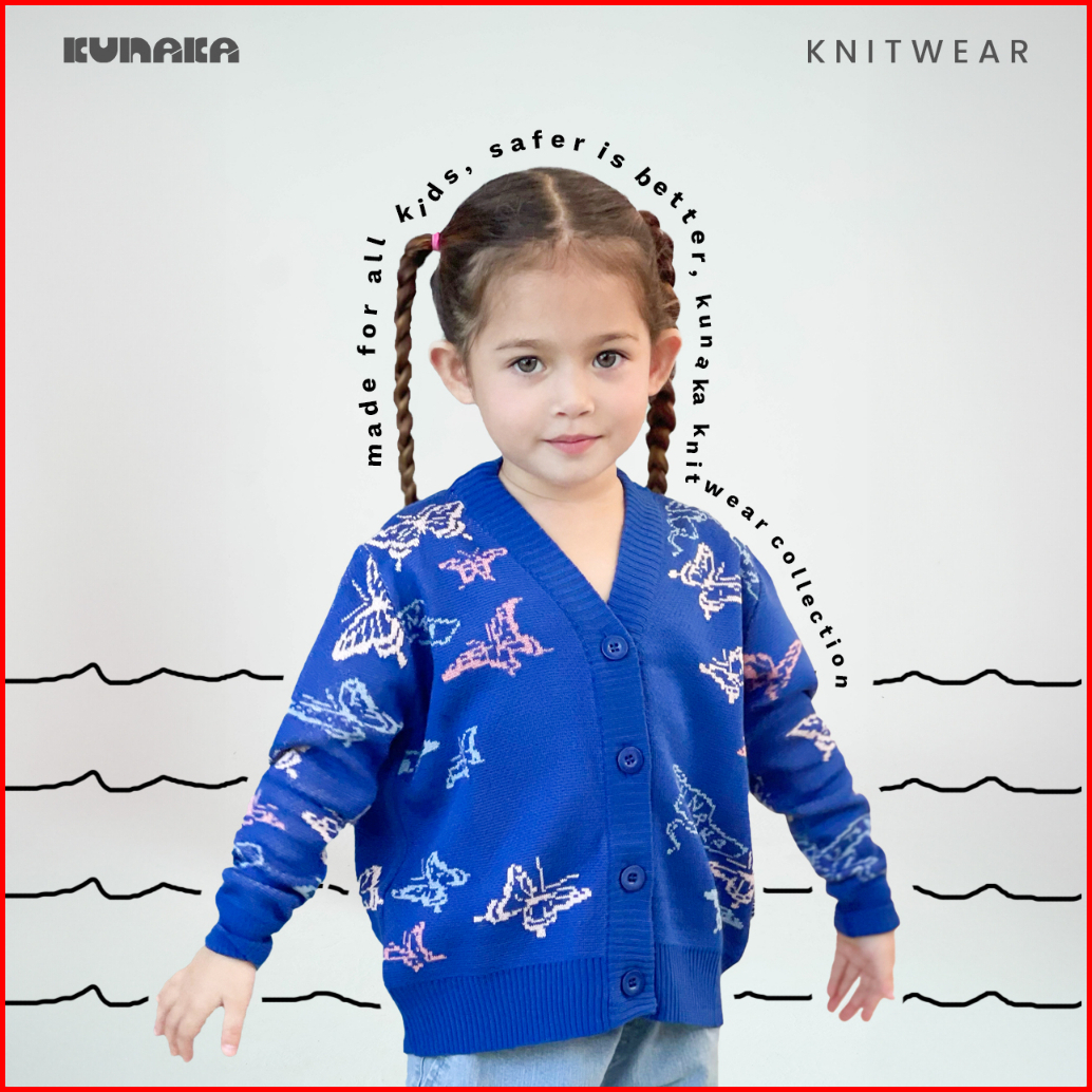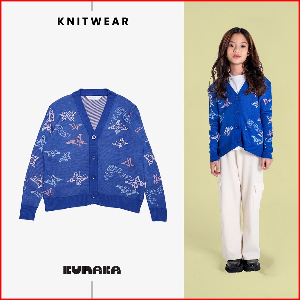 Kunaka - Papillon Dark Blue Knitwear Cardigan Anak Umur 4 -12 Tahun