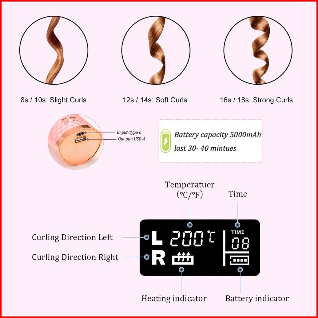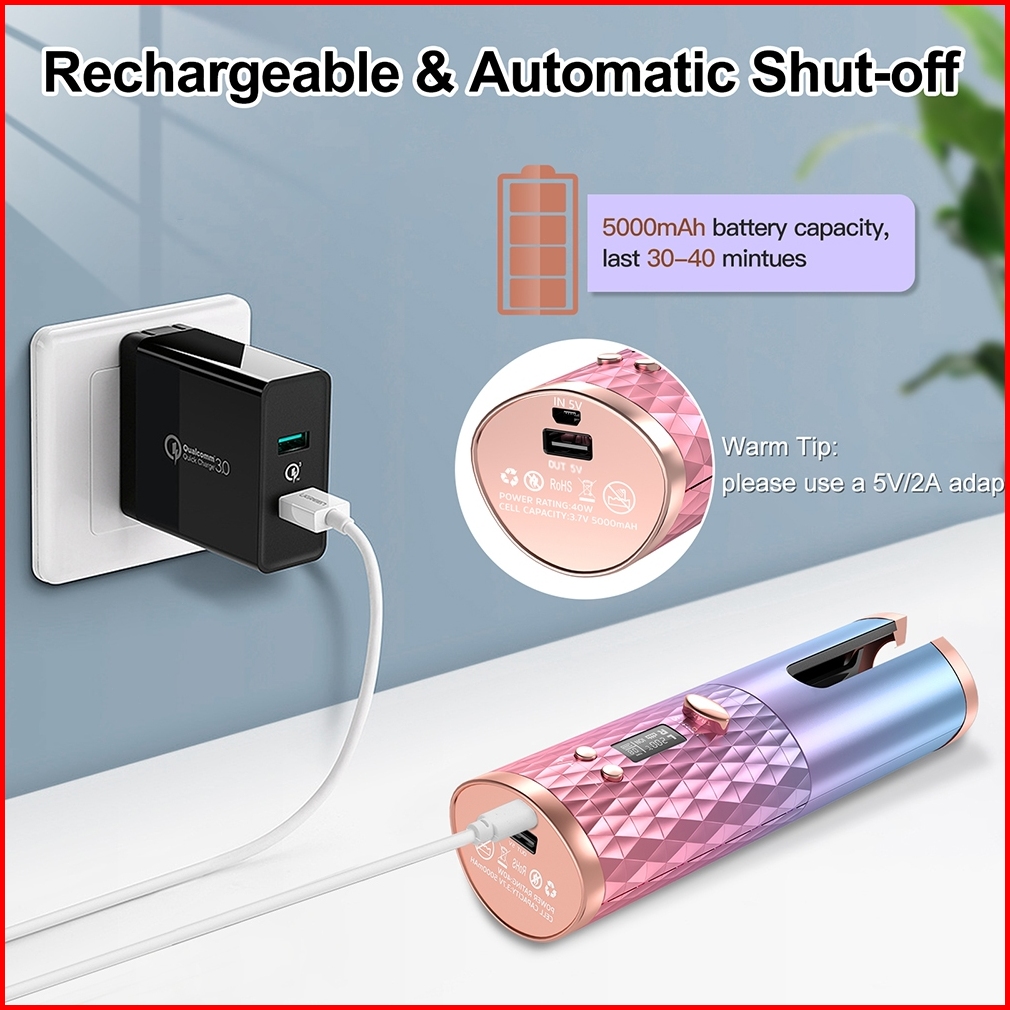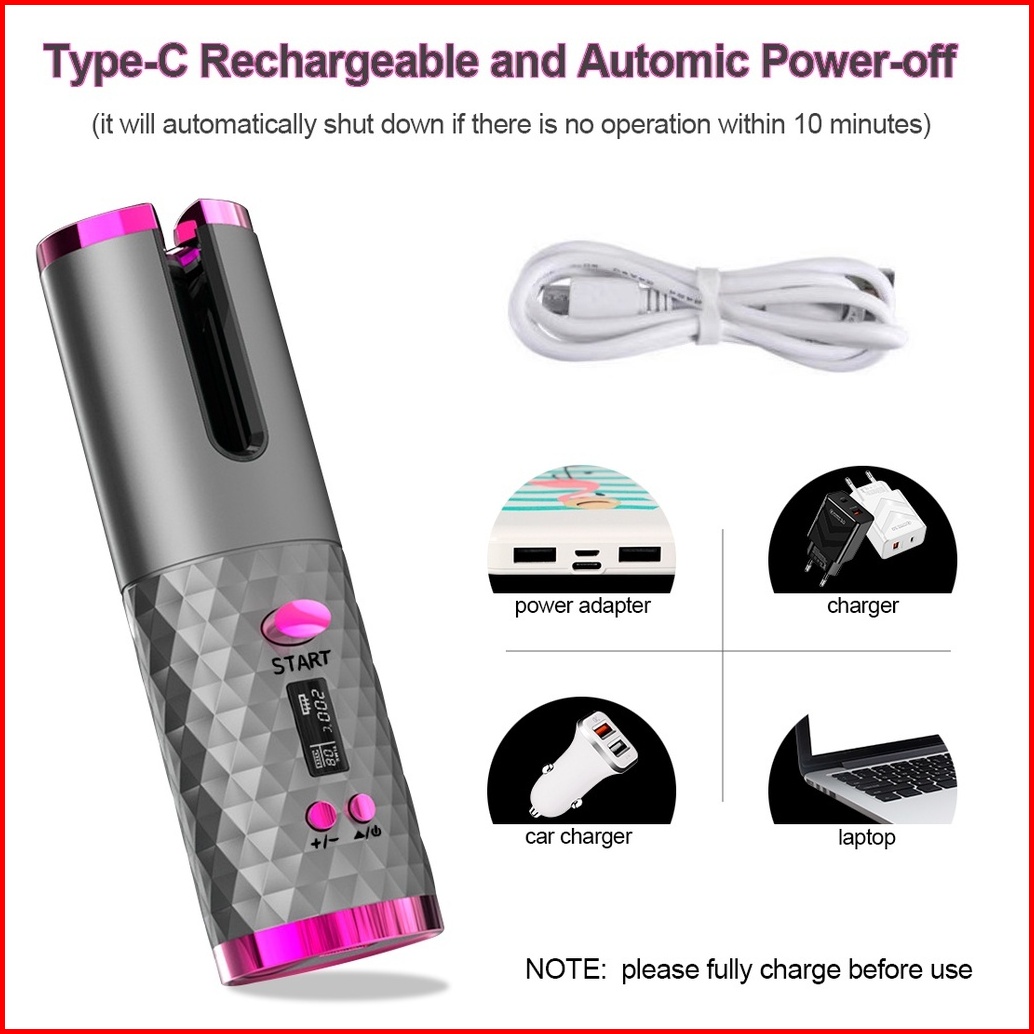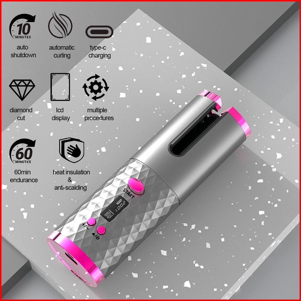 Cordless Automatic Hair Curler Set Alat Pengeriting Rambut Wireless Otomatis Tanpa Kabel Usb Rechargeable Gaya