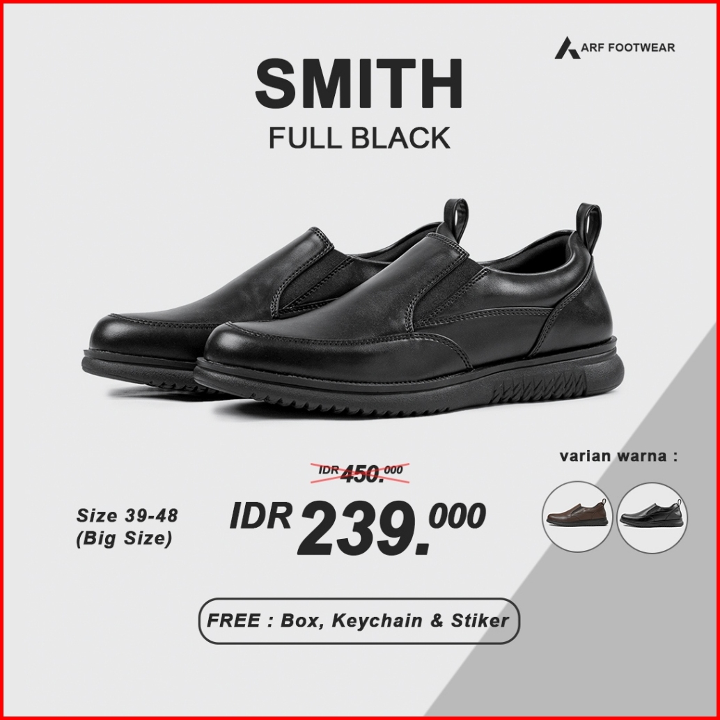 Arf Smith Black Sepatu Slip On Loafers Formal Kulit Pantofel Hitam Pria Wanita Kerja Kantor Kondangan Casual