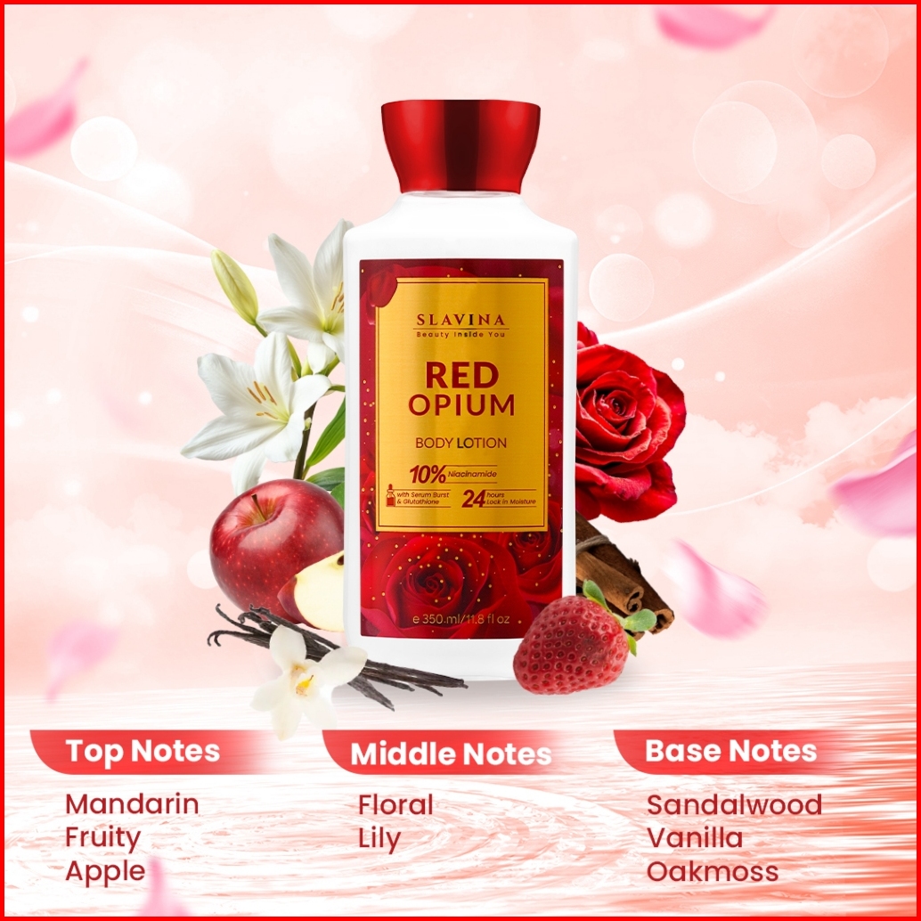 Slavina Body Lotion Mencerahkan Red Opium Niacinamide Moisturize Handbody Wangi Tahan Lama