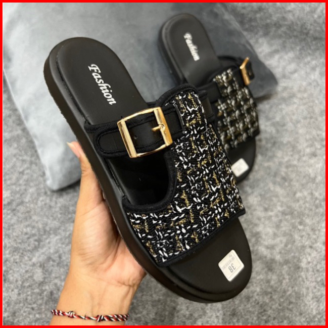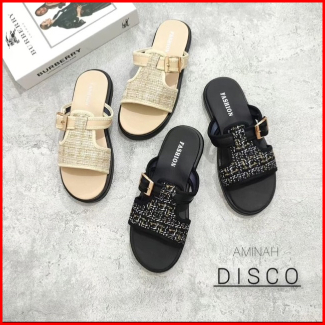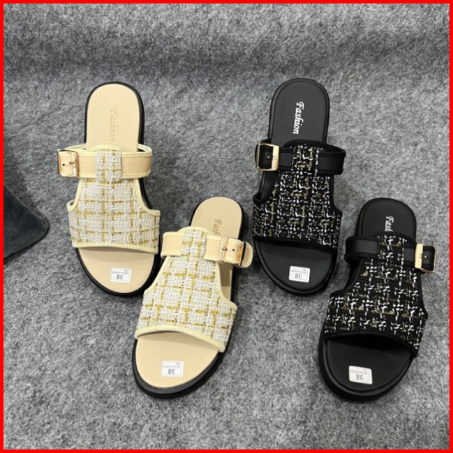 Sandal Cewek Slop Tali Samping Wedges Premium