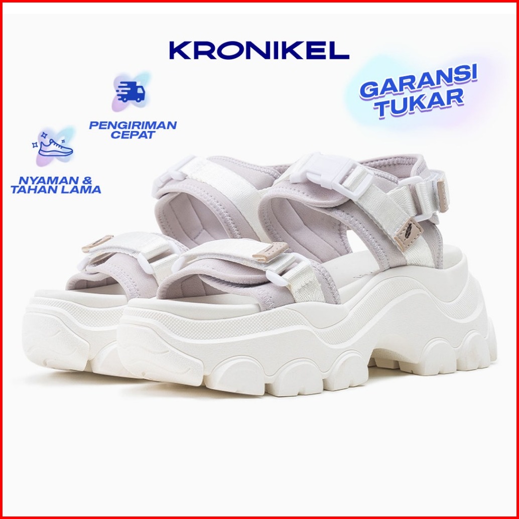 Kronikel Osaka Sandal Tinggi Tali Wanita Chunky Concert Sandal Putih Milk Pudding