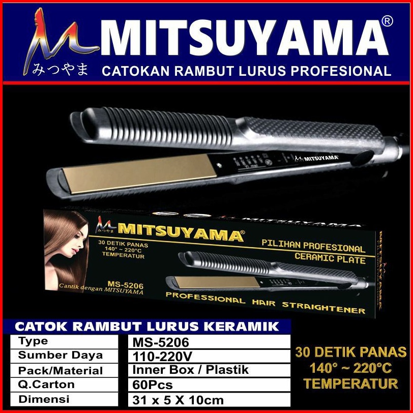 Catok Rambut Keramik Mitsuyama Ms-5206 Alat Catok 2in1 Lurus Dan Curl