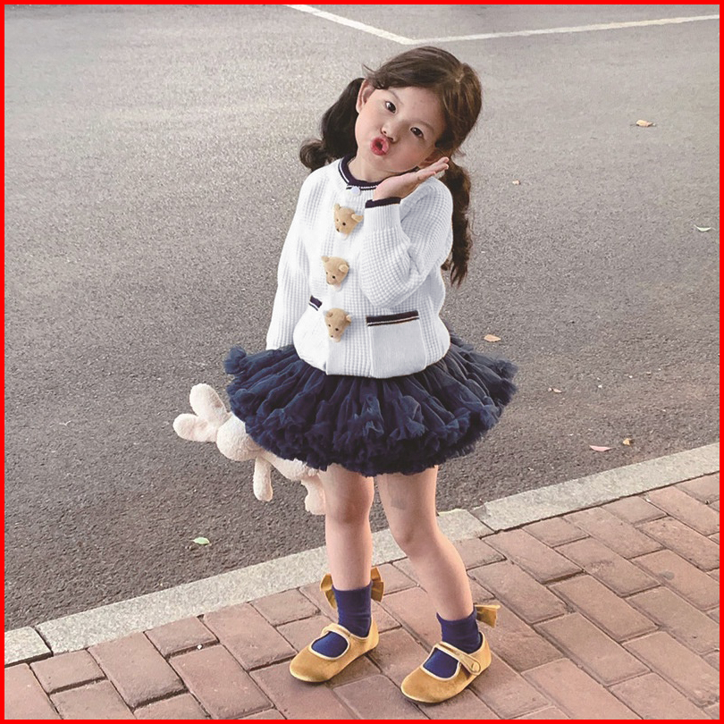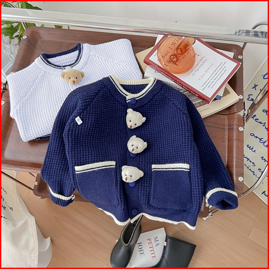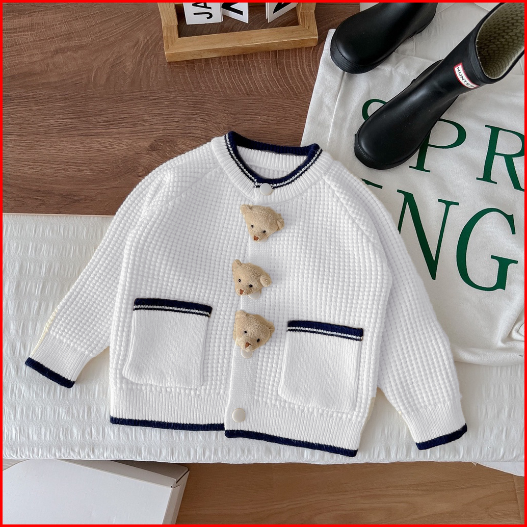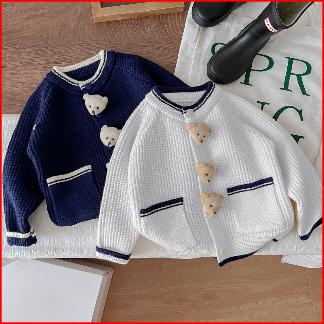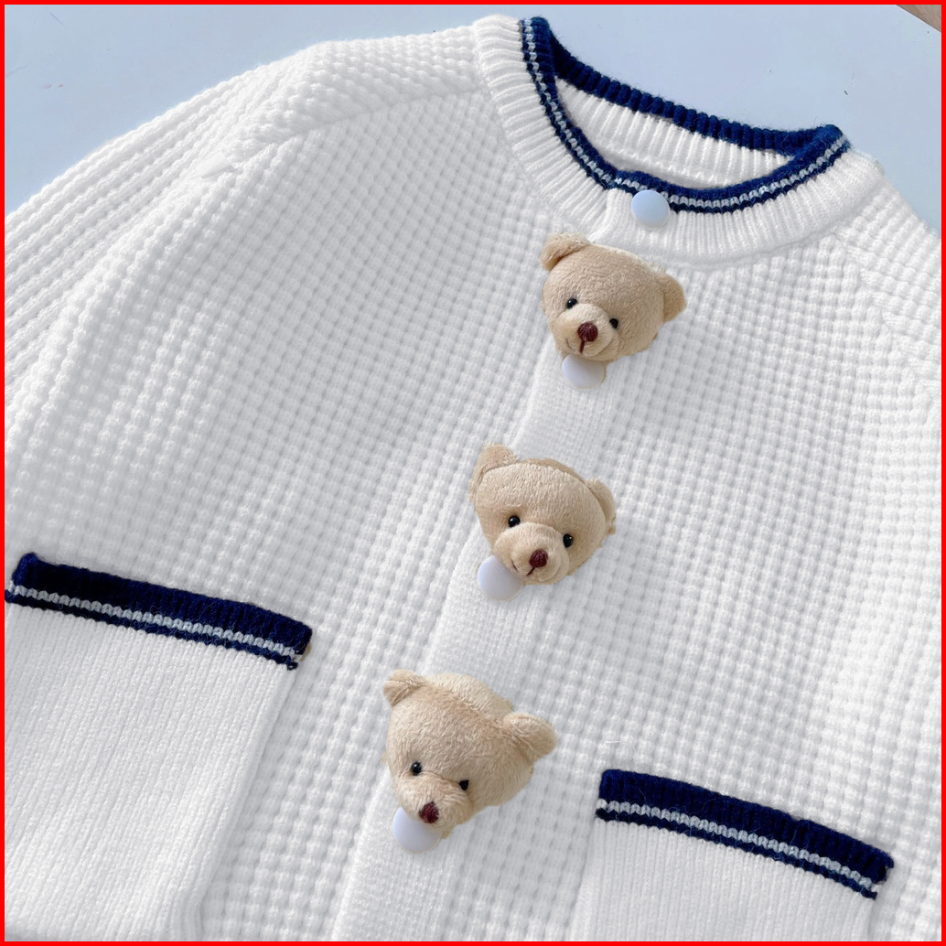 Zahra Button Bear Kids Cardy Cardigan Anak Perempuan Rajut Premium Usia 1 - 6 Tahun