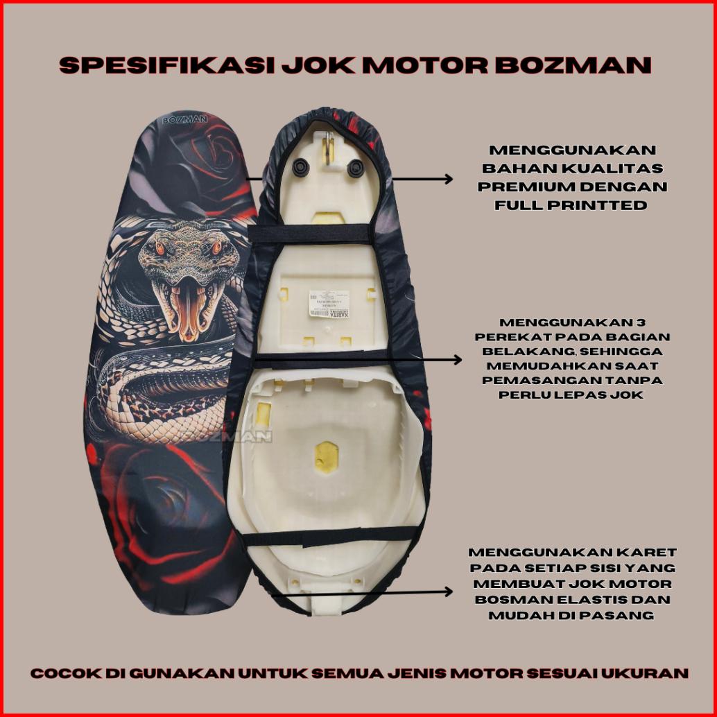 Sarung Cover Jok Motor Motif Full Print Bozman Premium Langsung Pasang Anti Ribet