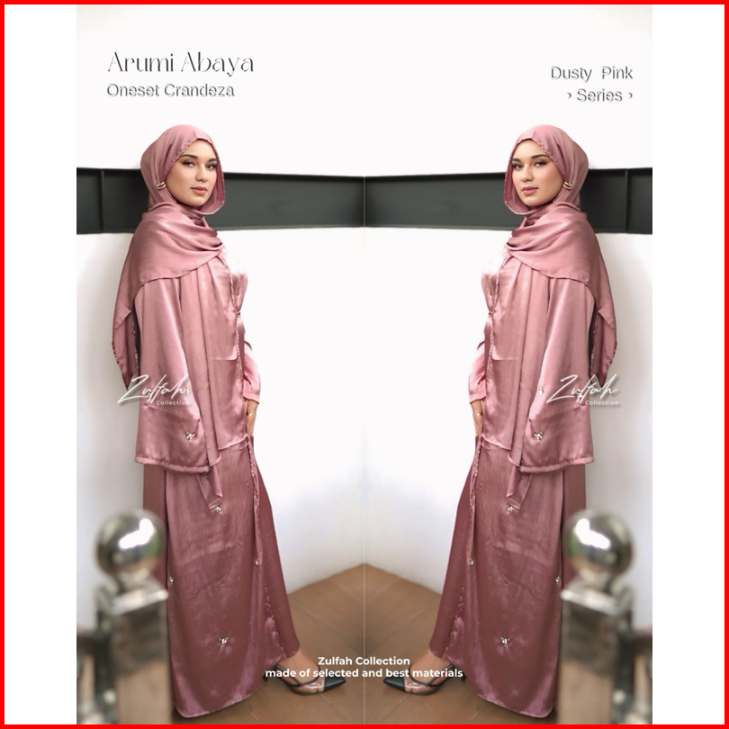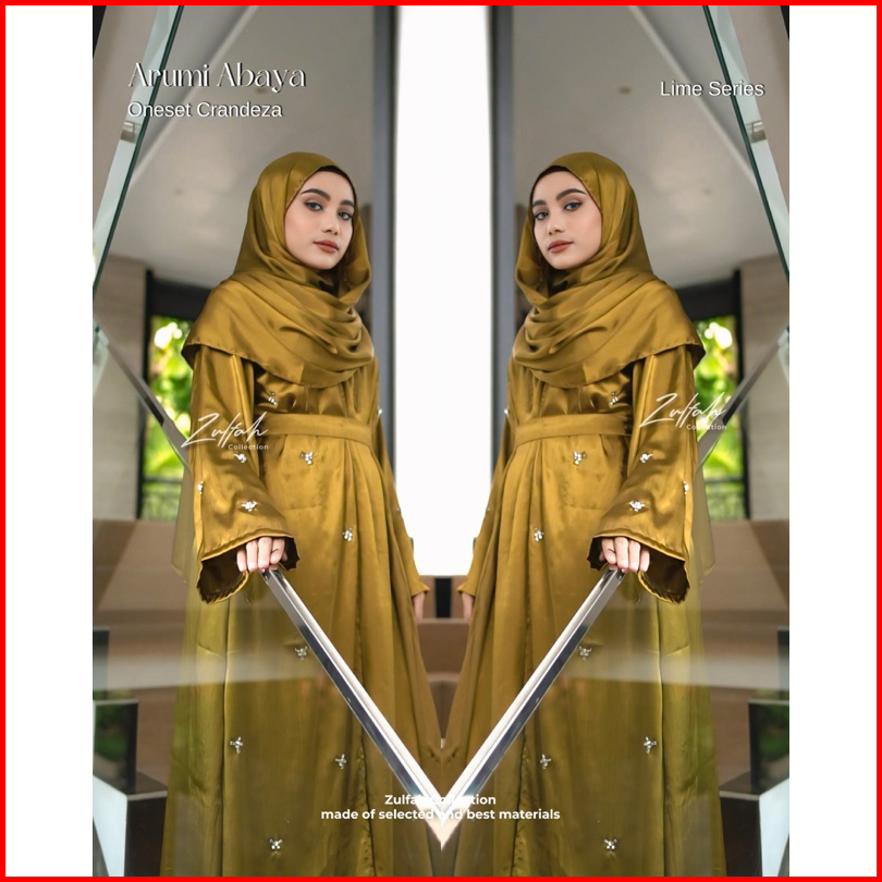 Abaya Set Hijab Premium Syakira Arumi Crandeza Silky By Zulfah Collection.