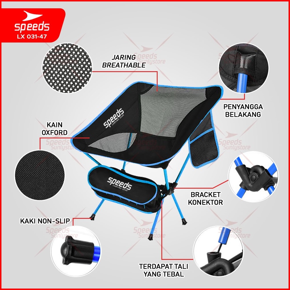 Speeds Kursi Lipat Jaring Space Folding Chair Foldable Keranjang Camping Mancing Tenda Outdoor Alam 031-47