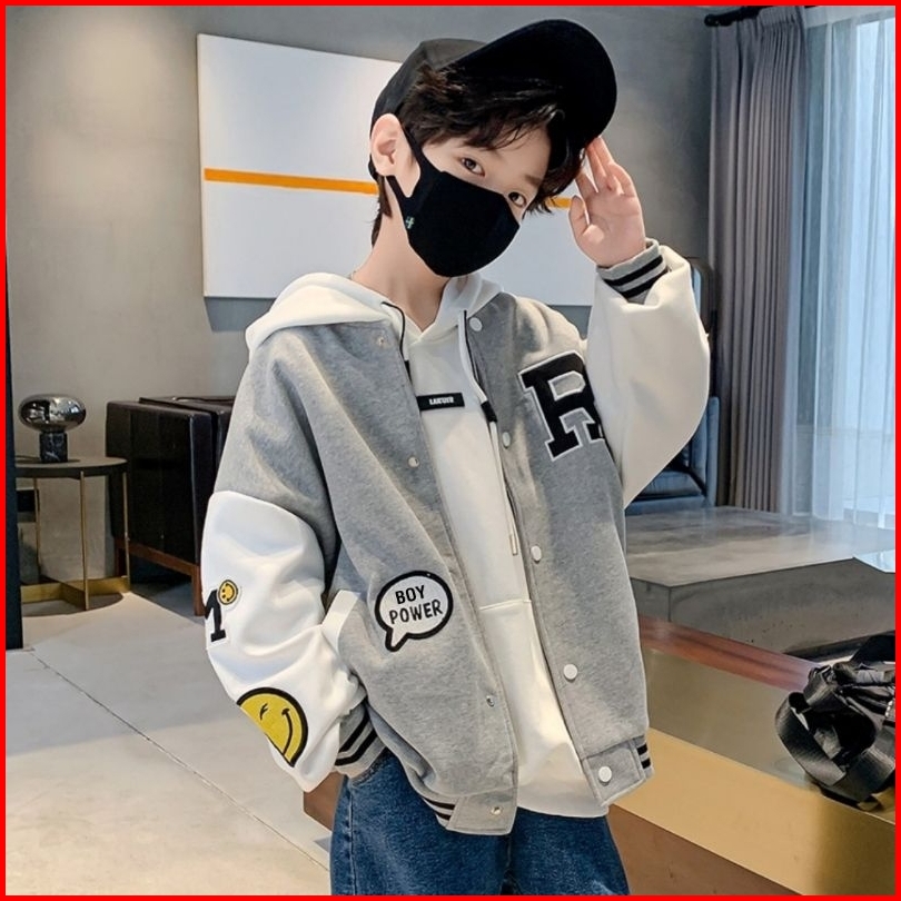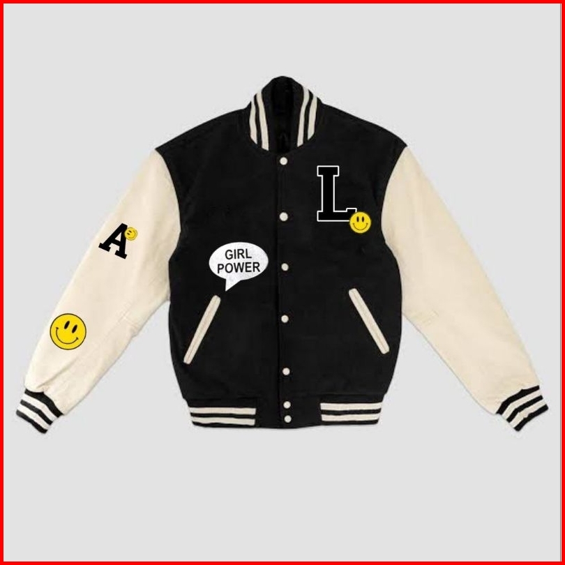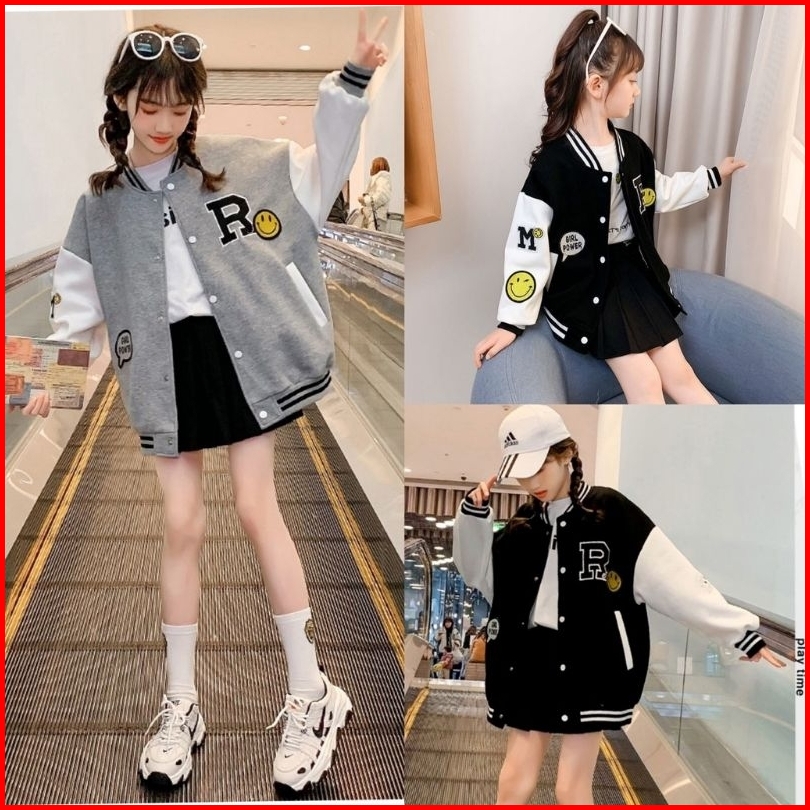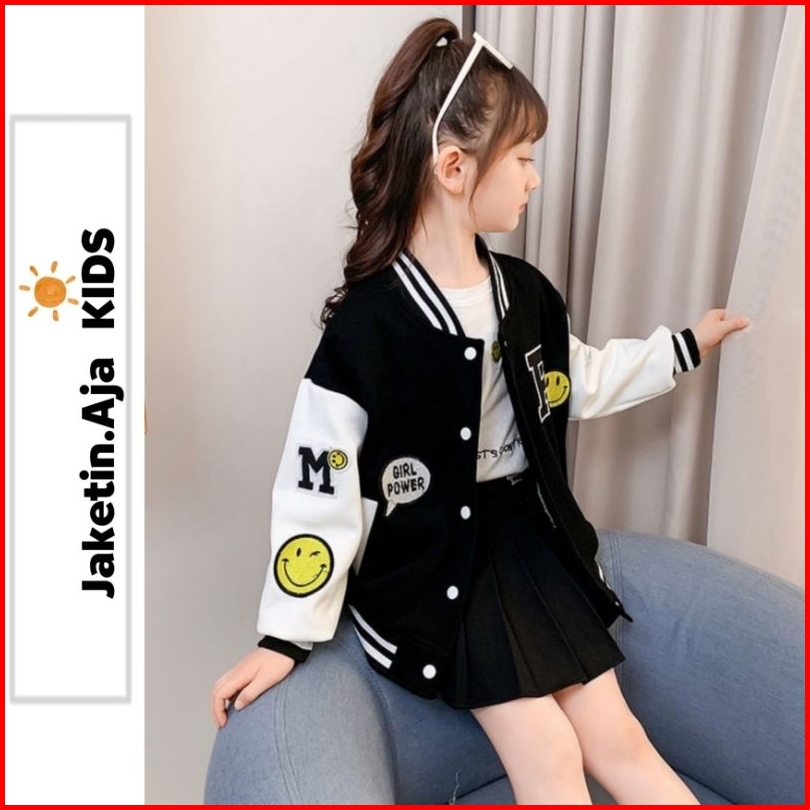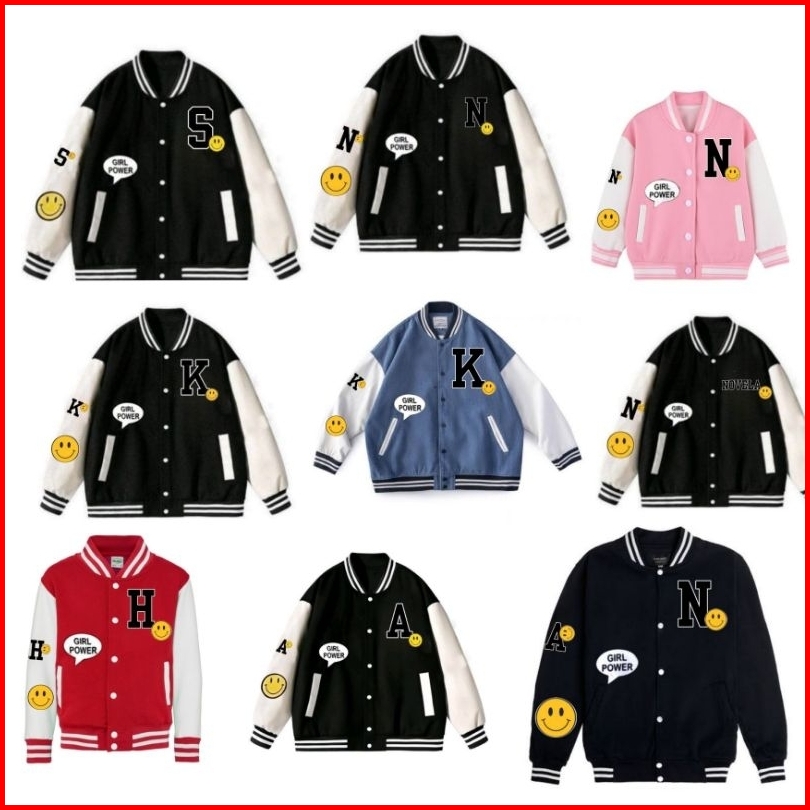 Jaketin Aja Kids Varsity Baseball Anak Unisex 1 Th - 18 Th Inisial R A C B F Bisa Custom Jacket Bomber Smile Girl Boy Po