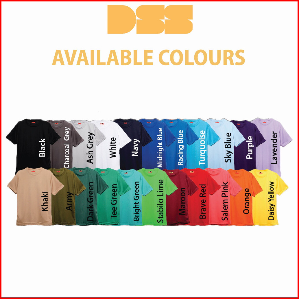 Black, White, Charcoal Gray, Ash Gray, Navy, Midnight Blue, Sky Blue, Racing Blue, Army, Tee Green, Sparkling Lime, Maroon, Brave Red, Salem Pink, Orange, Gold, Daisy Yellow, Turquoise, Bright green, Purple, Ocean, Lavender, Light Brown, Mint, Rose, Yellow, Dark Green, Khaki, Honey