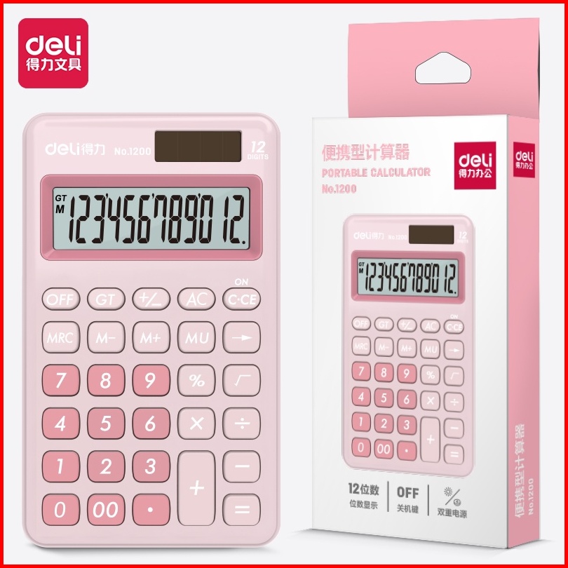 Deli Desktop Calculator Kalkulator Meja Mini Portable Dual Power Lucu 1200