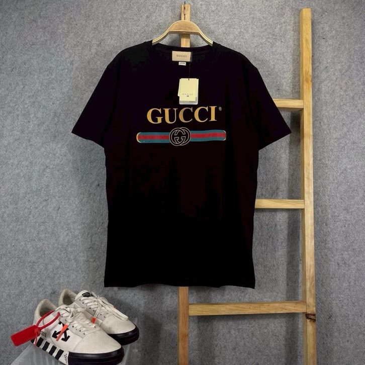 Kaos GUCCI LOGO TENGAH HITAM T-shirt Oversize pria/wanita