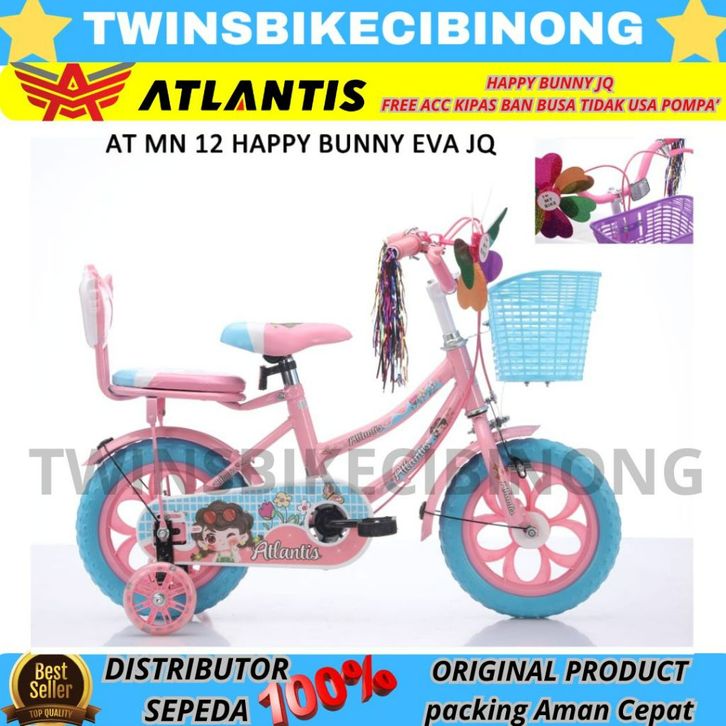 SEPEDA ANAK PEREMPUAN UKURAN 12 INCH BAN EVA ATLANTIS HAPPY BUNNY NABILLA HIGH QUALITY BERKUALITAS MURAH TERLARIS