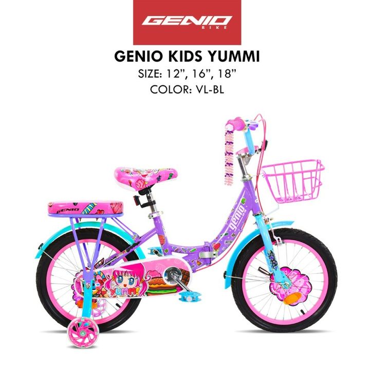 SEPEDA LIPAT ANAK CEWEK PEREMPUAN GENIO YUMMI BY UNITED UKURAN 12/16/18 SPEDA LIPAT MODEL TERBARU DENGAN RODA BANTU