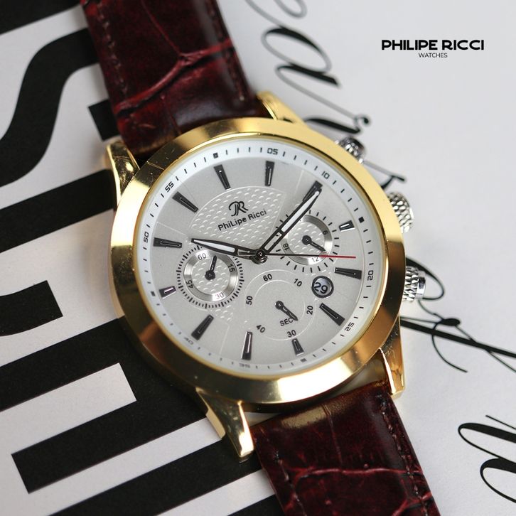 JAM TANGAN PRIA KULIT ANALOG GAYA MODERN DESAIN TERBARU 4235 MAN WATCHES LEATHER FREE BOX DAN BATERAI PHILIPE RICCI ORI