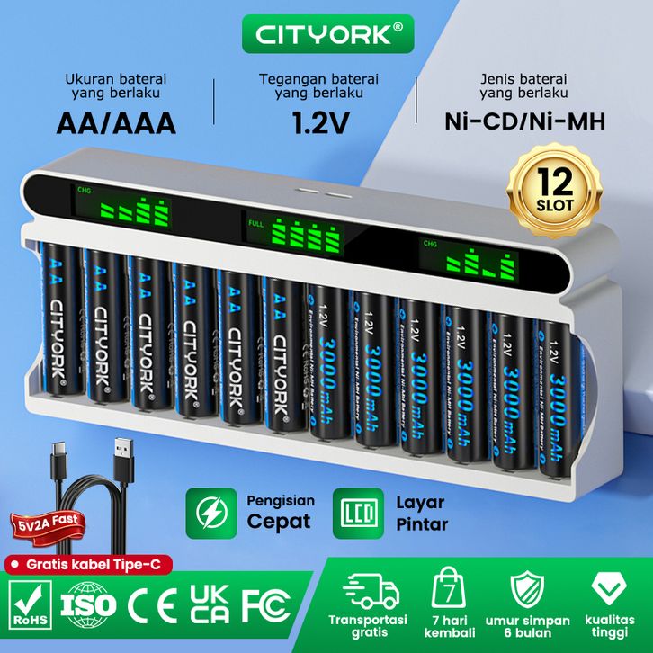 PALO 12 Slot Charger Baterai 1.2V AA AAA Ni-MH NI-CD Rechargeable