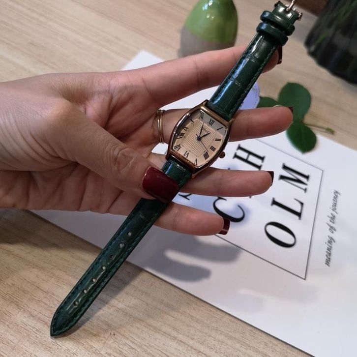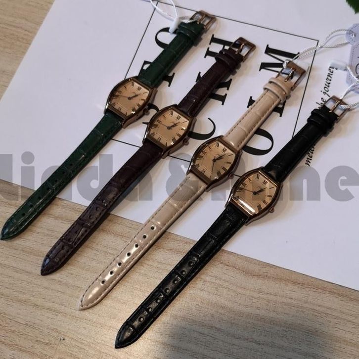 Jam Tangan Quartz Dial Kotak Kecil Casual Retro Untuk Wanita