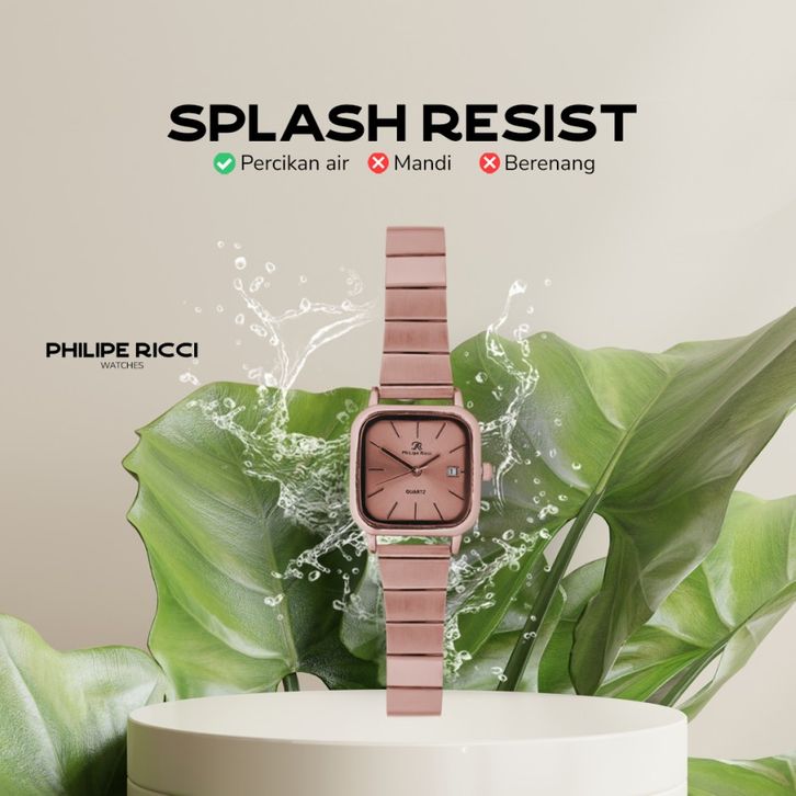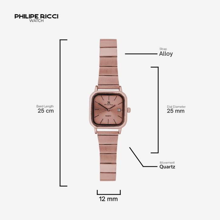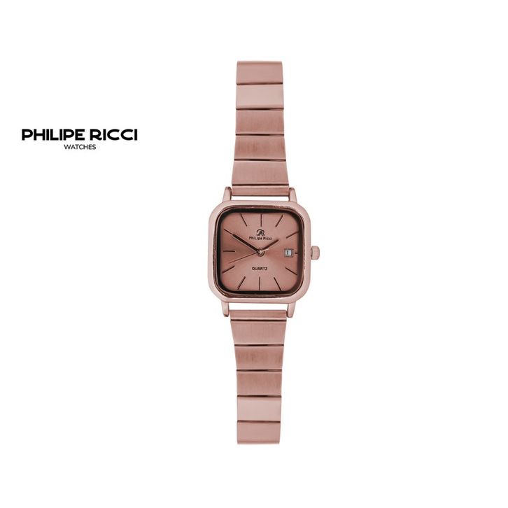 PhiLipe Ricci Jam Tangan Wanita Kecil Analog Tali Rantai Stainless steel Dial Kotak Simpel Modern 6450