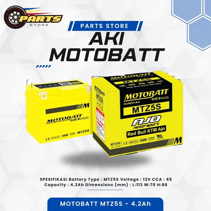 AKI MOTOR MOTOBATT MIO SPORTY BEAT KARBU VARIO 110 BEAT F1 SCOOPY ACCU GEL MTZ5S - 4.2AH TERBARU BERKUALITAS SNI