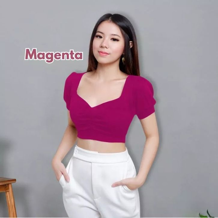 Atasan wanita Square Neck Lengan puff Spandex Rayon Korean Style