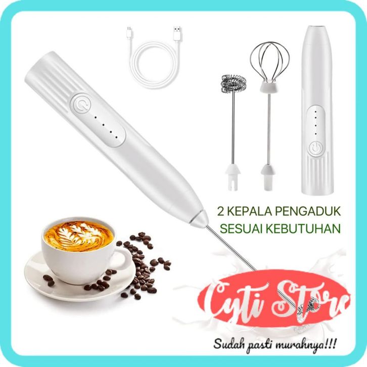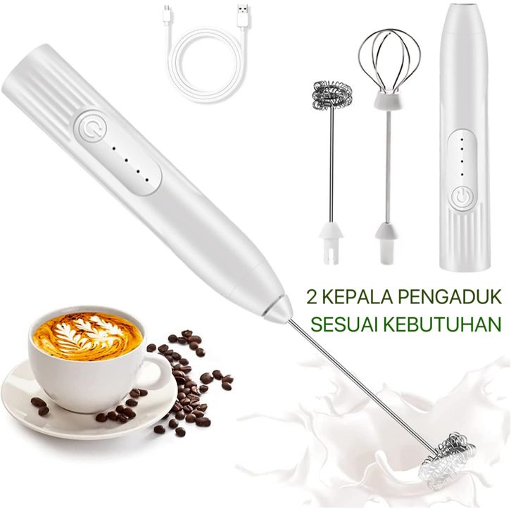[PROMO] Hand Mixer Mini 2 in 1 Pengocok Telur Whisk Milk Frother USB Charge - HMW1 - White